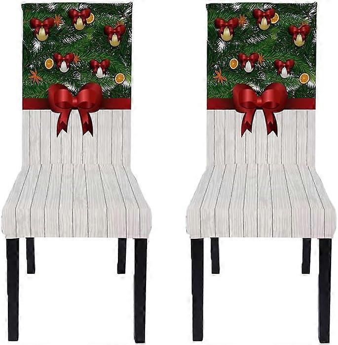 Christmas Bow Pattern Stretch Chair Covers Set of 2 for Dining Room Fabric Fit Stretch Chair Slipcover Protector (2PC, 1)