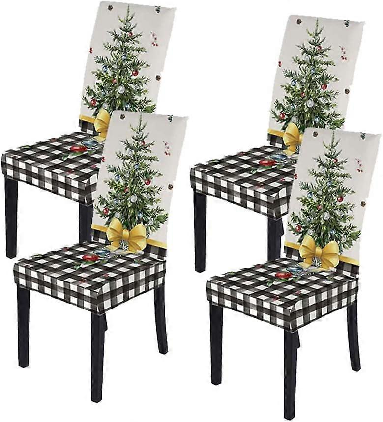 Set of 4 Christmas Dining Chair Slipcovers Stretch Parsons Chair Covers Snowflake Printed Washable Chair Protector -Beige