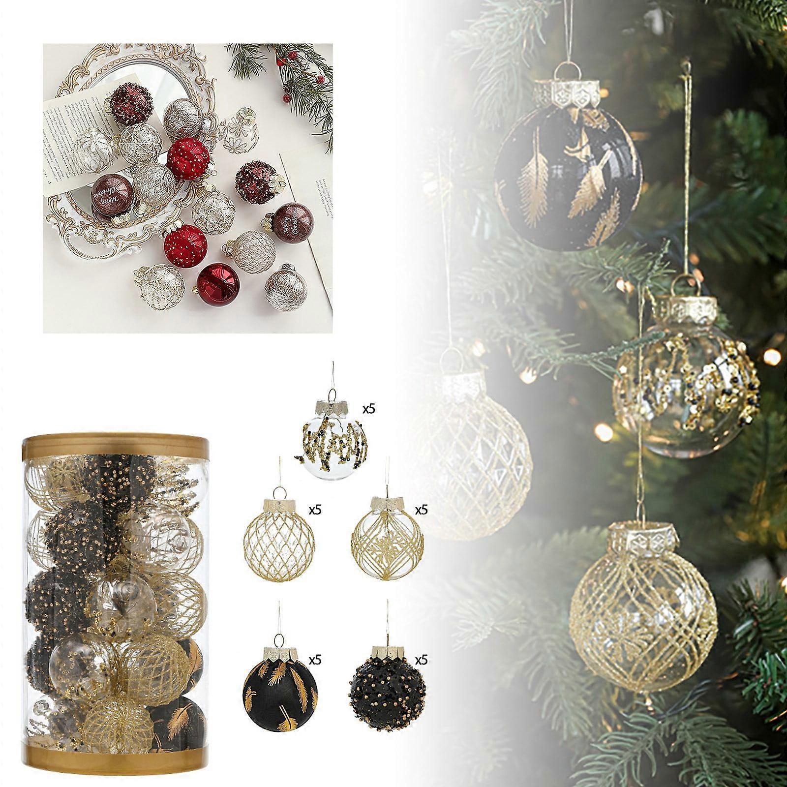 Pack of 25 Clear Glitter Christmas Ball Ornaments, 1.96" Compatible with 50cm Tree, Hanging Pendant Set for Holiday Decor