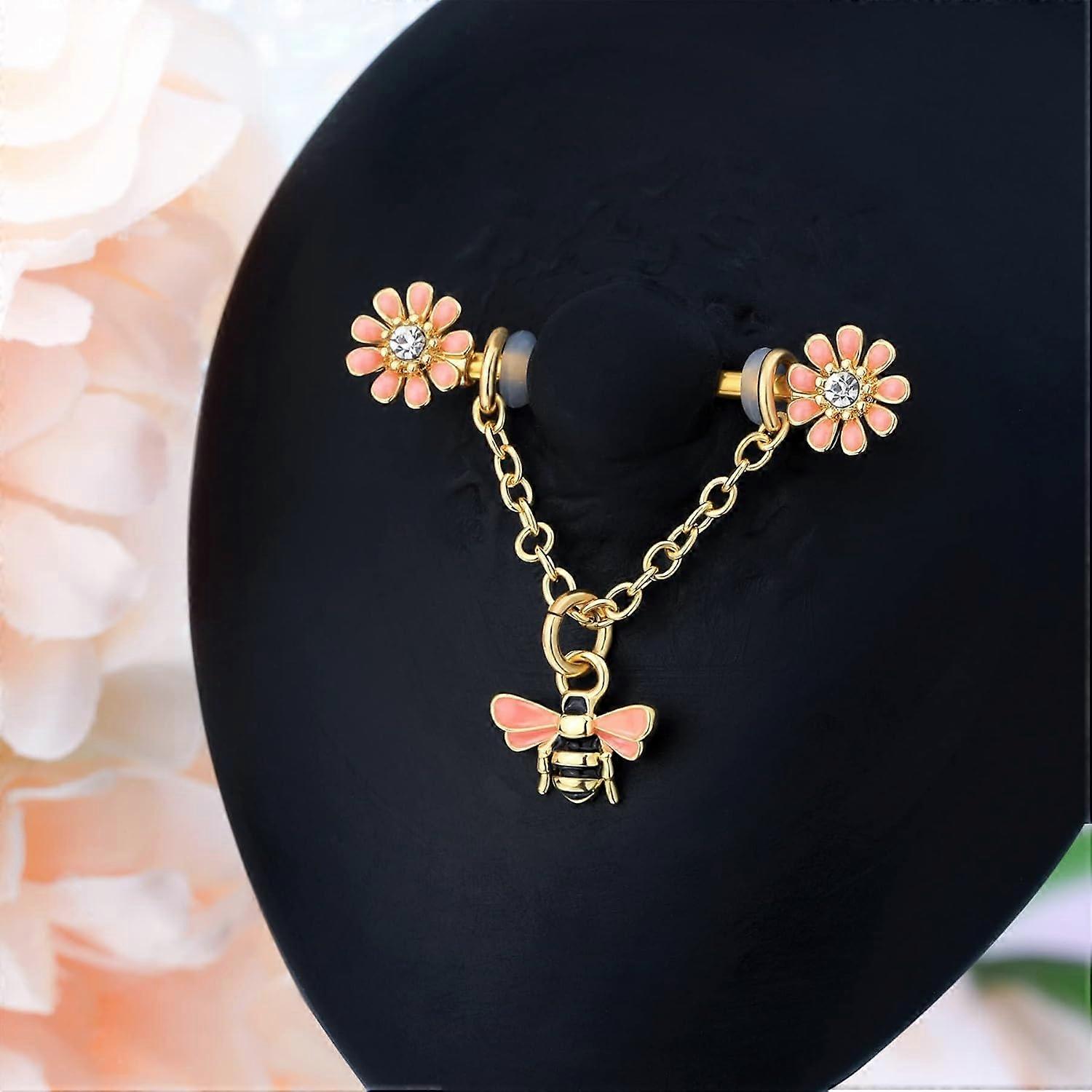 Chain Nipple Shield Rings - Dainty Bee Nipple Piercing Barbells 14G Dangle Rings