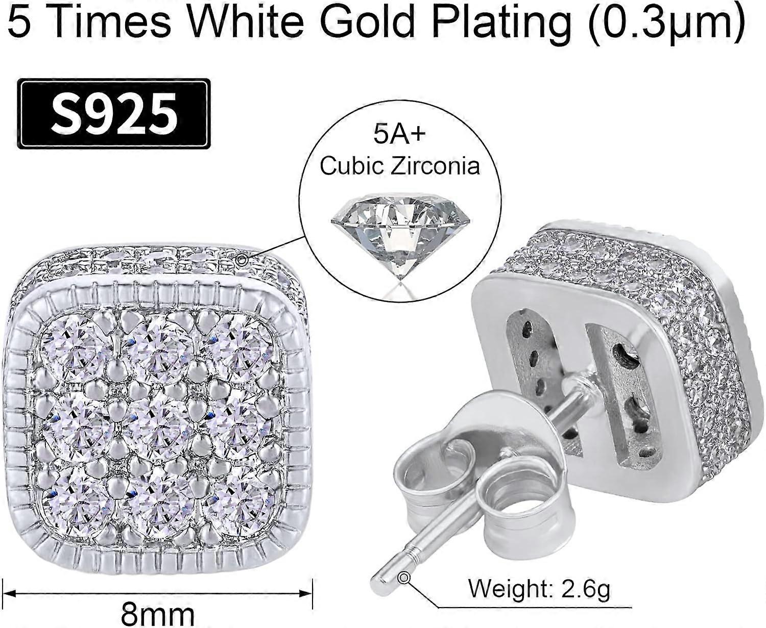 S925 Diamond Stud Earrings for Men, 14K Real Gold Plated Iced Out Earrings 5A CZ Stones 925 Sterling Silver Studs Hypoallergenic Earrings