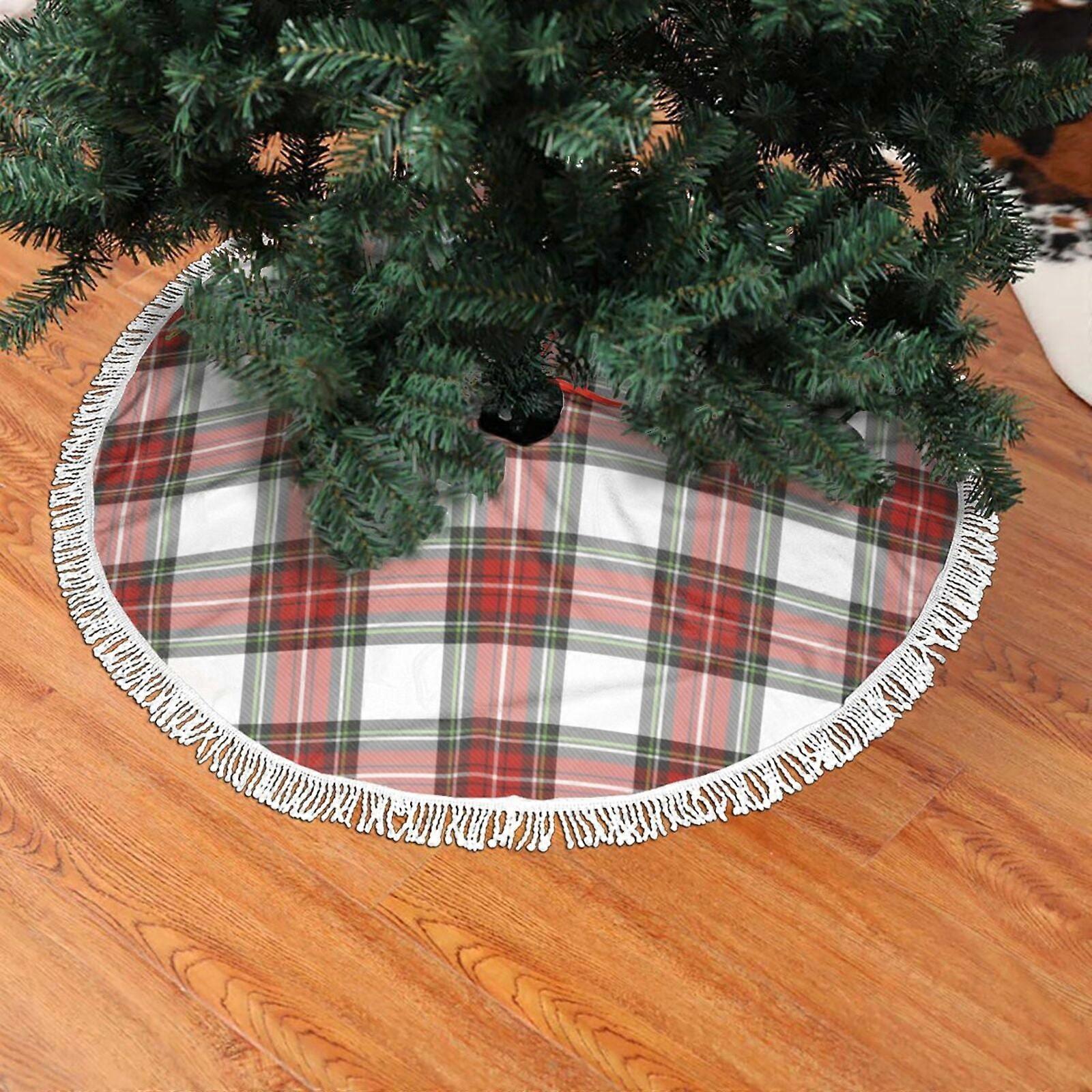 Christmas Fringed Lace Tree Skirt, Farmhouse Cottage Christmas Plaid Tartan Accent Soft, Light, Good Touch Tree Skirt 36"