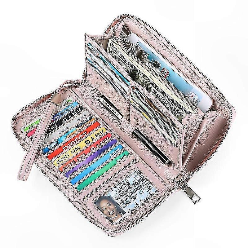Rfid Blocking Leather Wallet for Women - Large Capacity Zip Around Clutch with Wristlet - Pink