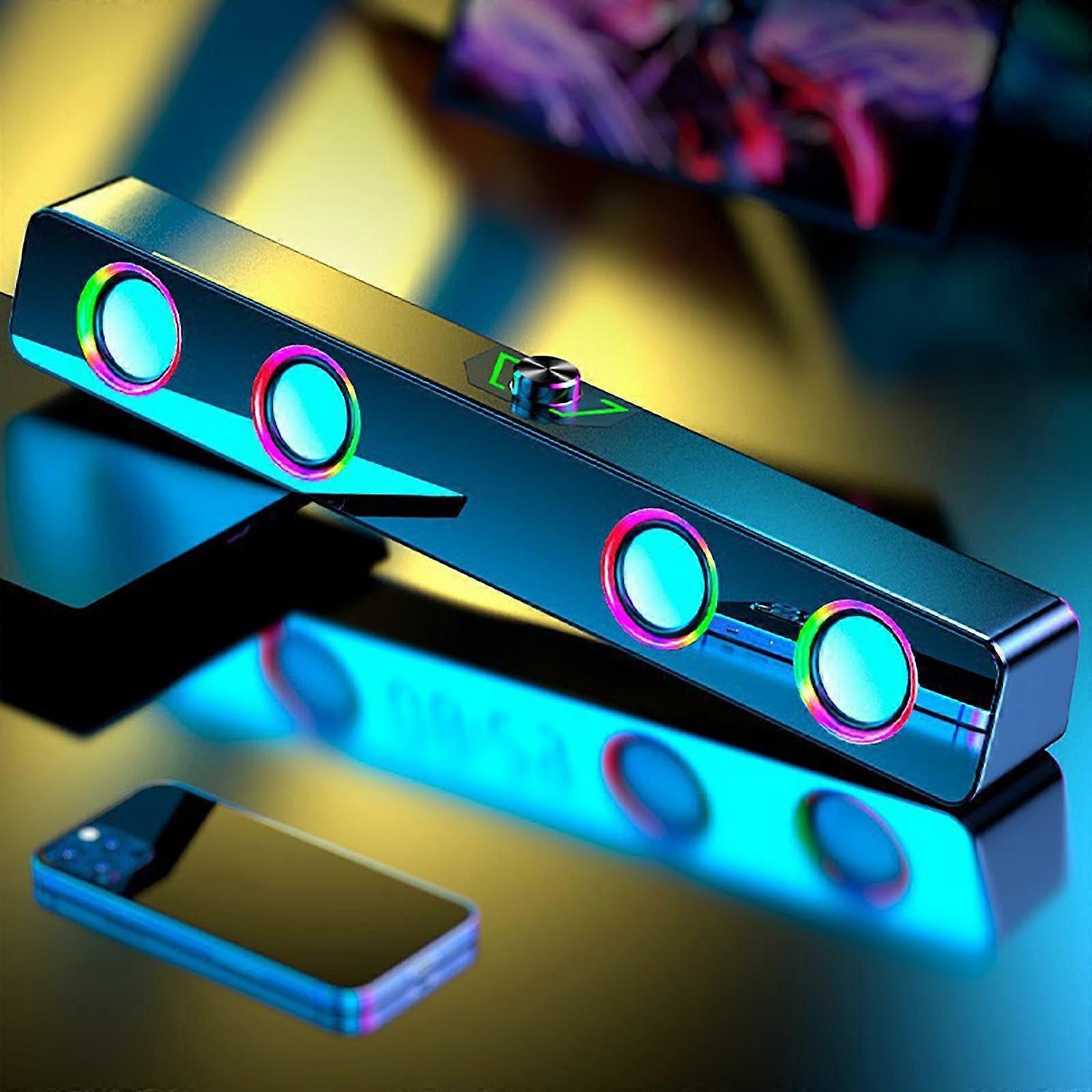 Bluetooth Audio, Computer, Mobile Phone, Multimedia Desktop, Laptop Speaker Features: Innovation of Desktop Computer Bluetooth Sound Four Unit Surge Bass Mirror Design The higher configuration sound system of Souls of Sound accommodates two sound producing units with diaphragms, making the bass more and full Innovative Experience Bluetooth 5.0 Connection Fast as Connection Long Distance, Continuously Connected Newly designed mirror design, eye-catching appearance, and sound design adds a slight tilt back to reduce the interference of desktop reflection on sound, targeting the characteristics of near-field listening in desktop audio Mirror design features clear appearance and sound at a glance The volume adjustment knob is easy to adjust, making it . We have been like this The Teana Sound has excellent sound quality performance with its powerful 2-speaker unit and acoustic diaphragm unit Product Description: size:40.3*4.7*7.6CM Premium Sound Quality:Immerse yourself in a world of unparalleled audio with our sound system. Boasting premium sound quality, it delivers crisp highs, deep lows, and a rich overall listening experience for music, movies, and more. Wireless Connectivity for Convenience:Cut the cords and enjoy the freedom of wireless connectivity. Our sound system seamlessly pairs with your devices via Bluetooth, providing a clutter-free setup and making it easy to stream your favorite content. Sleek and Space-Saving Design:Enhance your living space with our sleek and space-saving design. Compact yet stylish, our sound system complements any room decor, offering a perfect blend of aesthetics and functionality. Multi-Functionality for Versatile Use:Experience versatility with our multi-functional sound system. Whether you're hosting a party, watching a movie, or enjoying a quiet evening, this device adapts to your needs, providing a range of features to enhance every moment. User-Friendly Controls and Remote:Navigate effortlessly with user-friendly controls or the included remote. Adjust volume, switch modes, and customize settings with ease, ensuring a seamless and enjoyable user experience for all.