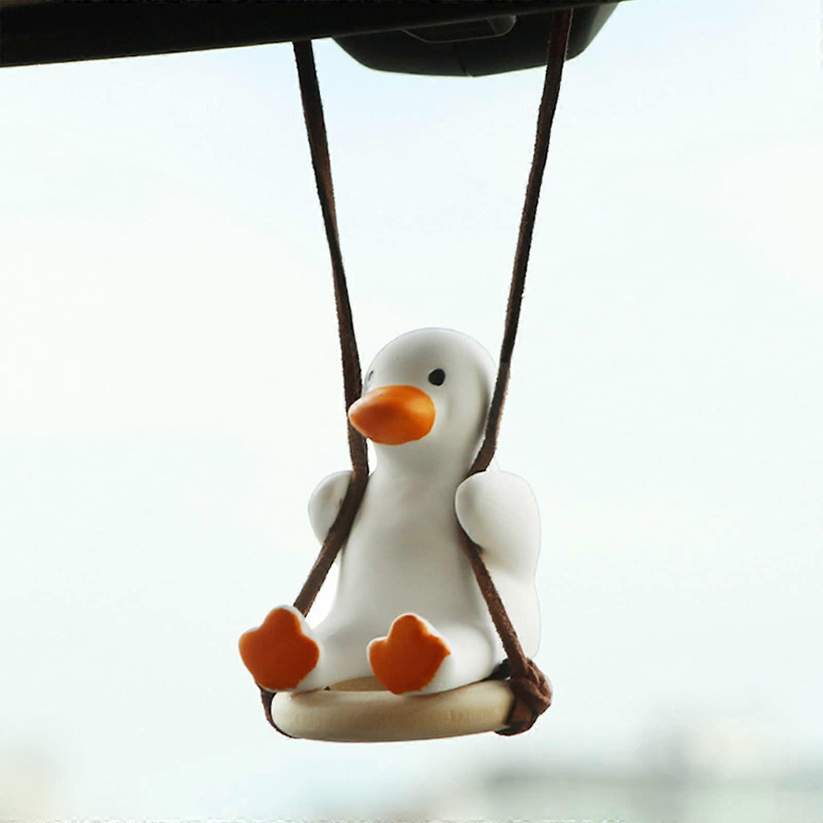 ZENGO Swing Duck Car Hanging Ornament Cute Flying Duck Pendant Hanging Car Interior Accessories for Car Rear View Mirror Pendant (White)
