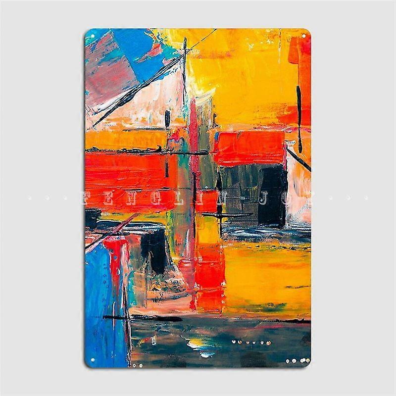 Colorful Abstract Minimalist Design Texture Distressed Style Metal Plaque Poster Pub Garage Painting Décor Tin Sign Posters Size: 16 x 12 Inches
