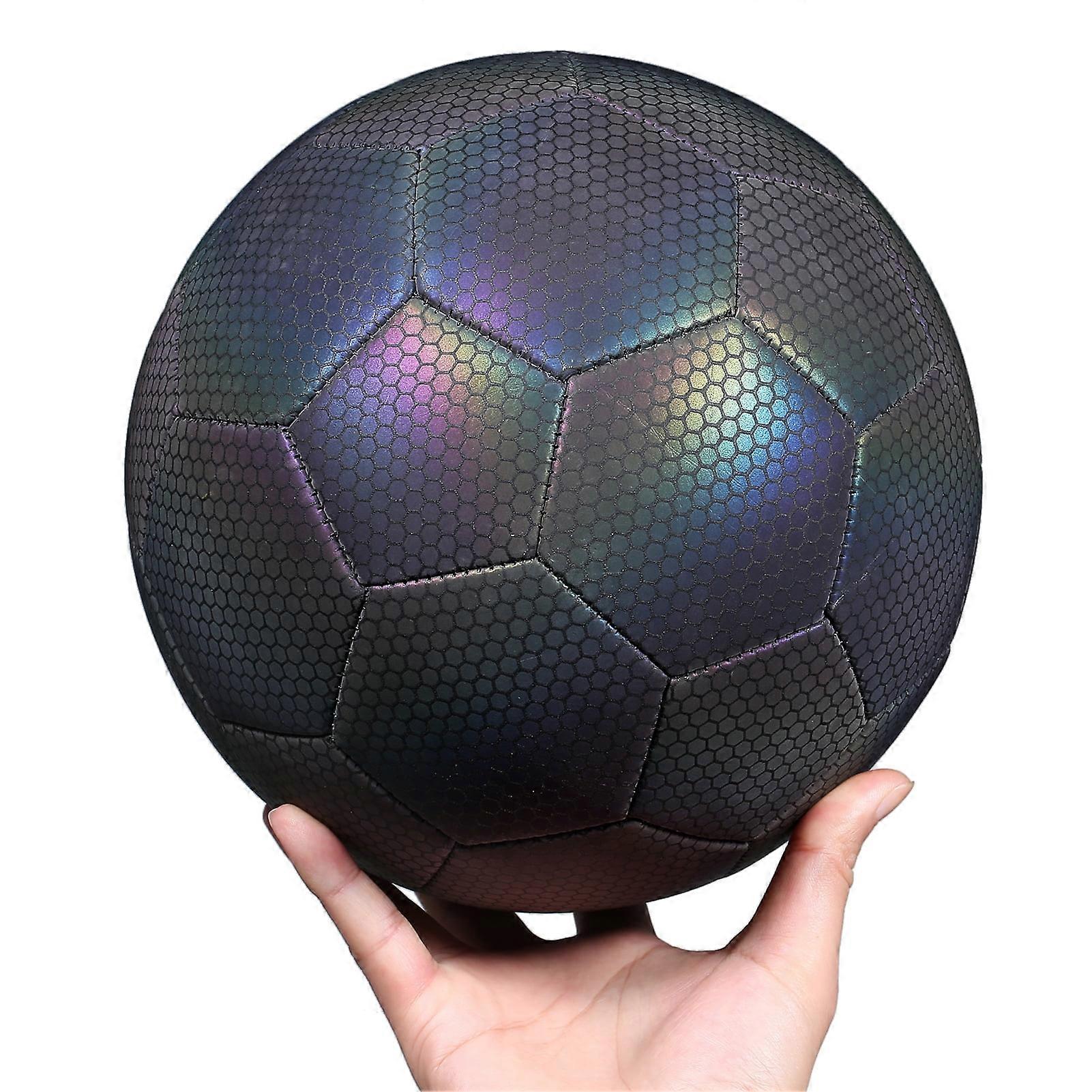 Reflective Soccer Ball Night Glowing Light Up Camera Flash Soccer Ball for Indoor Outdoor Soccer Training Reflective material is highly visible and attractive when light is shining on it at night, great for taking photos or videos with camera flash on. With official size and weight, suitable for both soccer training and recreational use. ball is deflated to ensure delivery, please inflate it before using. Made of wear-resistant PU leather, EVA foam, and flexible rubber bladder to ensure good and shape retention. Perfect gift for soccer enthusiasts. Size 5: Circumference: 680-700mm / 26.8-27.5in Weight: 420g - 445g / 14.8oz - 15.7oz Recommendation: For people aged 16+ years old Specifications: Weight: 320g - 360g / 11.3oz - 12.7oz Size: Size 4 / Size 5 (optional) Circumference: 620-650mm / 24.4-25.6in Size 4: Material: PU + EVA + Rubber Recommendation: For 8-14 years old Color: Color A / Color B (optonal) Package List: 1 * Reflective Soccer Ball 1 * Pump Note: The ball is deflated to ensure safe delivery, please inflate it before using. Perfect gift for soccer sports enthusiasts. Reflective material is highly visible and attractive when the light is shining on it at night, great for taking photos or videos with the camera flash on. Made of wear-resistant PU leather, EVA foam, and flexible rubber bladder to ensure good bounce and shape retention. With official size and weight, suitable for both soccer training and recreational use.
