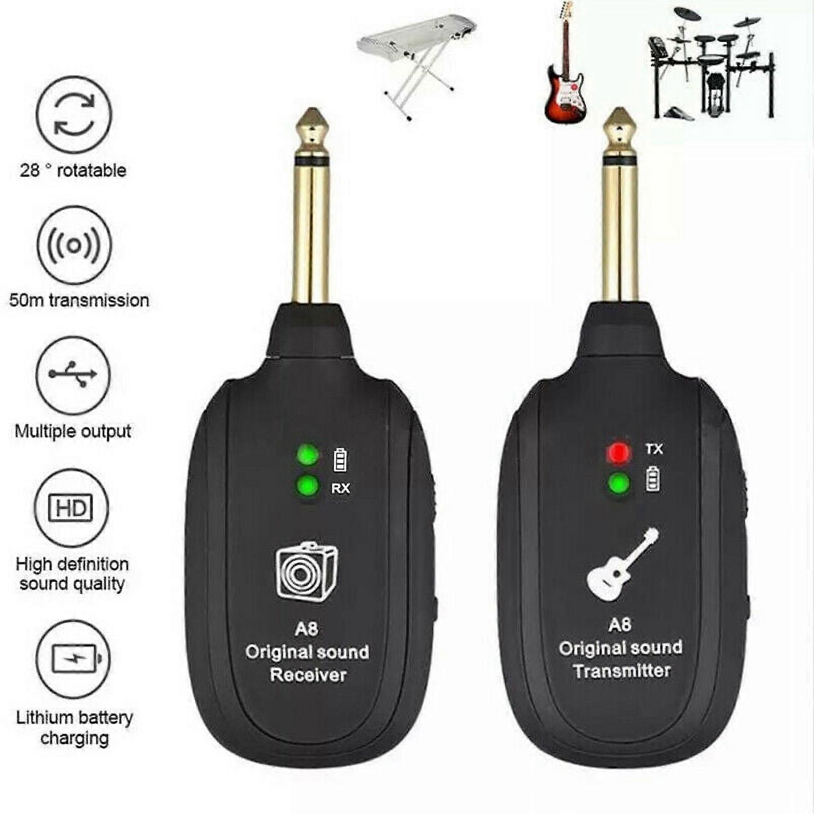 Tomshoo A8 UHF Wireless Guitar Transmitter Receiver Set 730mhz 50M for Electric Guitars Bass Violin