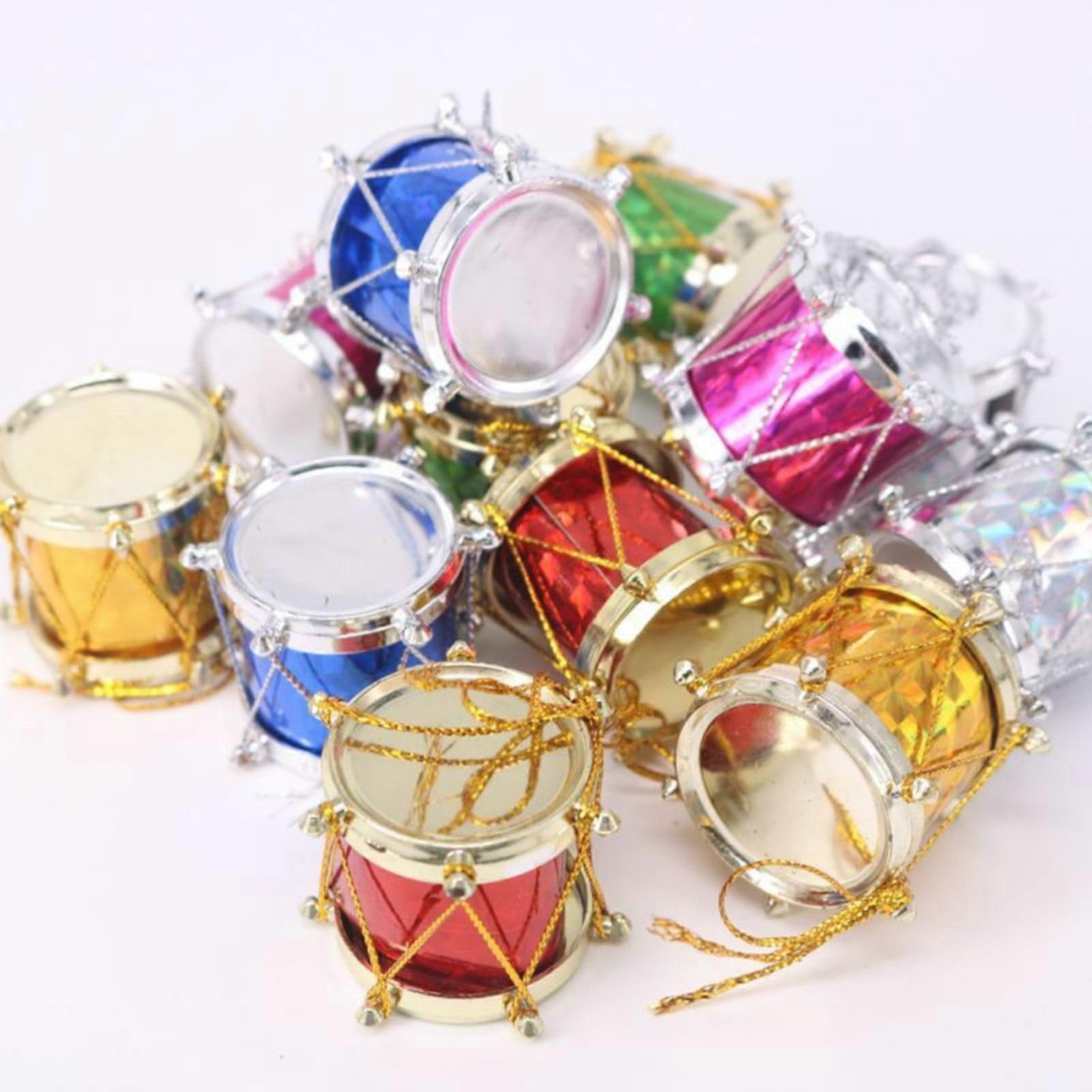 Uclet 12 Pcs Colorful Glitter Drum Ornaments, Compatible with Christmas Tree Outdoor Indoor Decor, Holiday Wedding Party Hanging Pendants