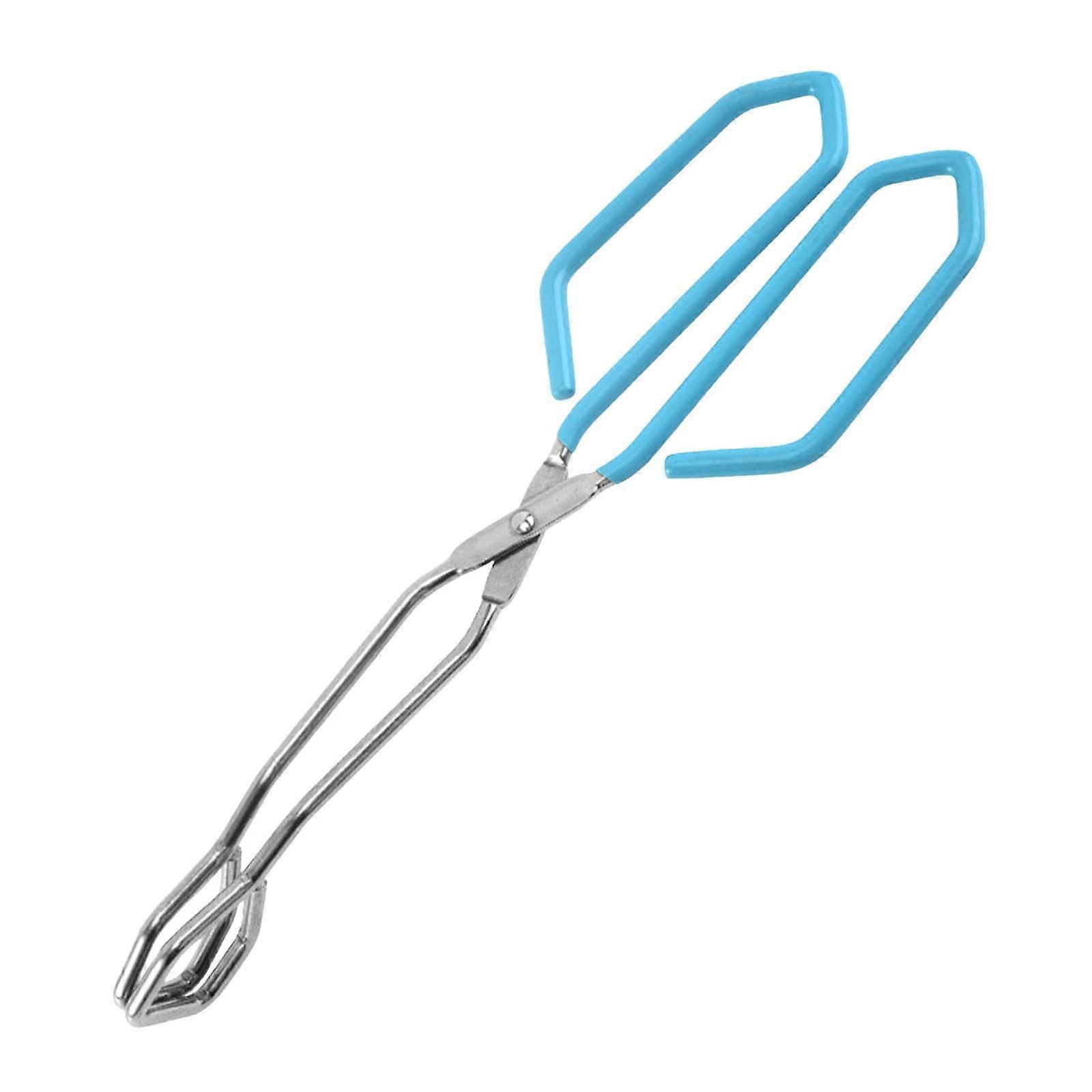 Mengzhiii Scissor Tongs Stainless Steel Food Tongs With Wrap Handle Angled Bread Clamp For BBQ Grilling Cake Blue Kitchen for Cooking Small