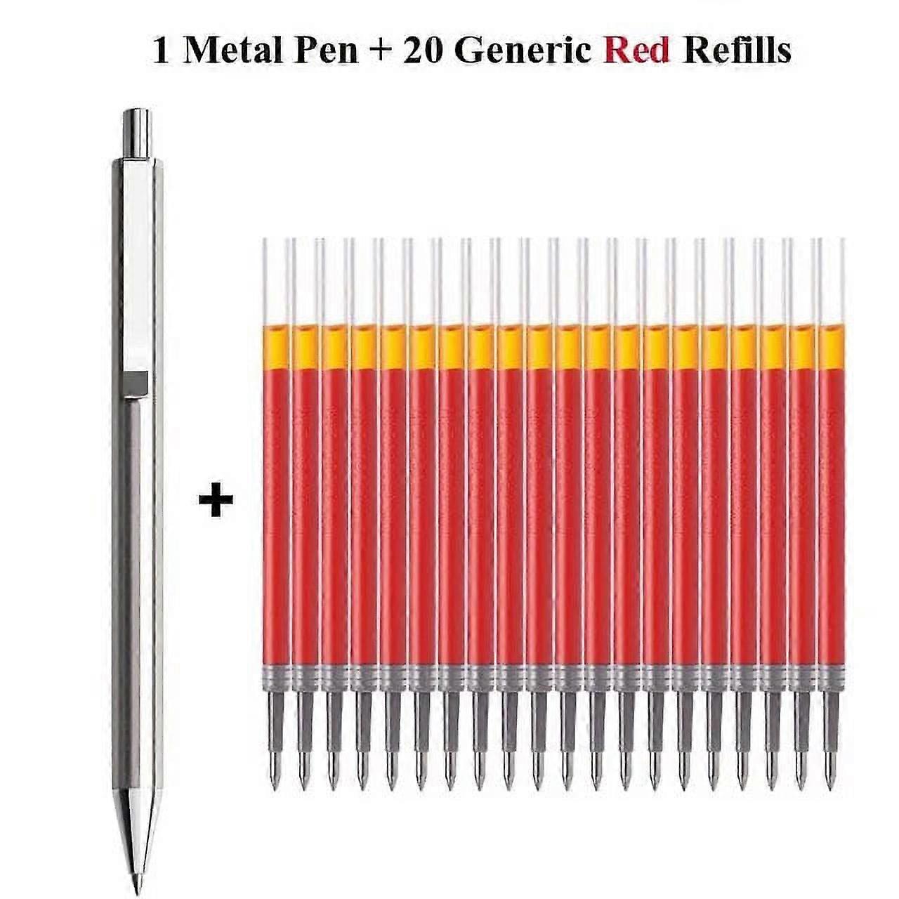 M&G Stainless Steel Metal Retractable Gel Pens, 0.5mm Fine Point Black ink Ballpoint Signature Pen with Replaceable Blue Refills 1Pen 20Red Refills