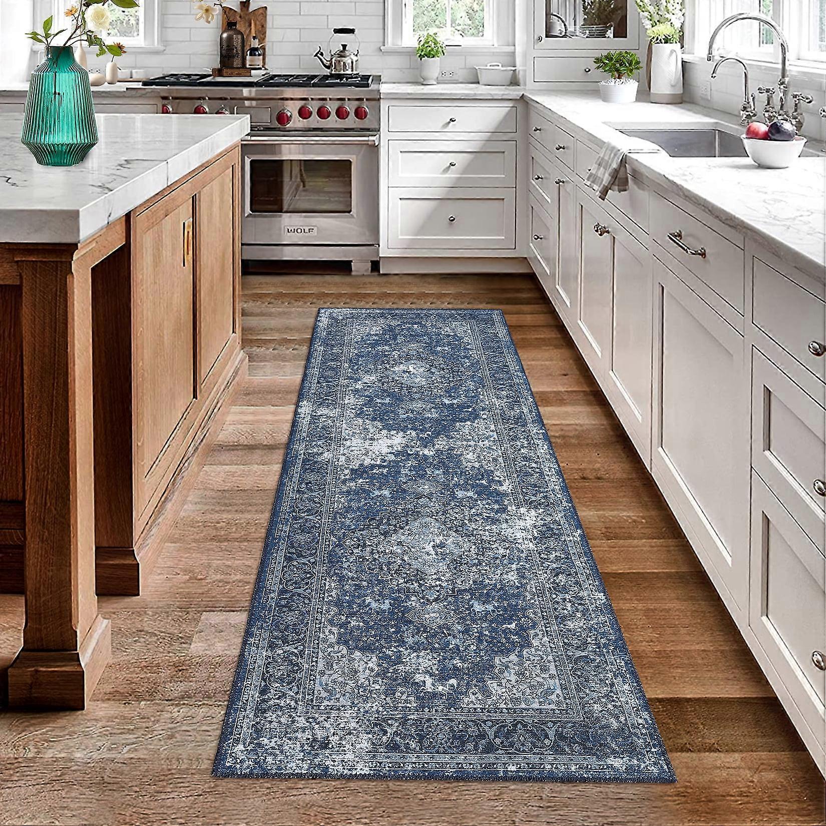 Haperlare Runner Rug 2' x 6' Blue - Washable Vintage Boho Distressed Area Rug for Living Room, Bedroom, Home Office