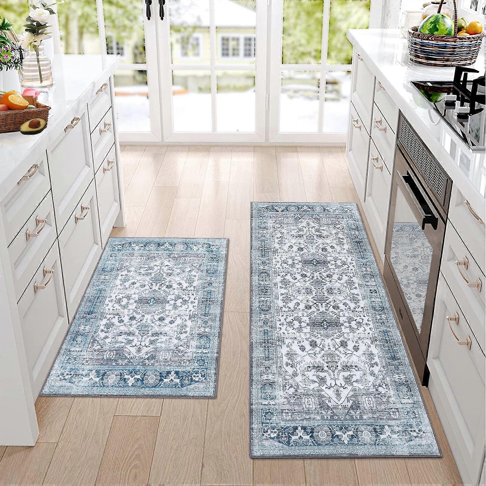 Haperlare Entryway Rugs 2 x 3 Washable Rugs Floral Rug Vintage Area Rug Non-Slip Indoor Door Mat, Gray/Blue