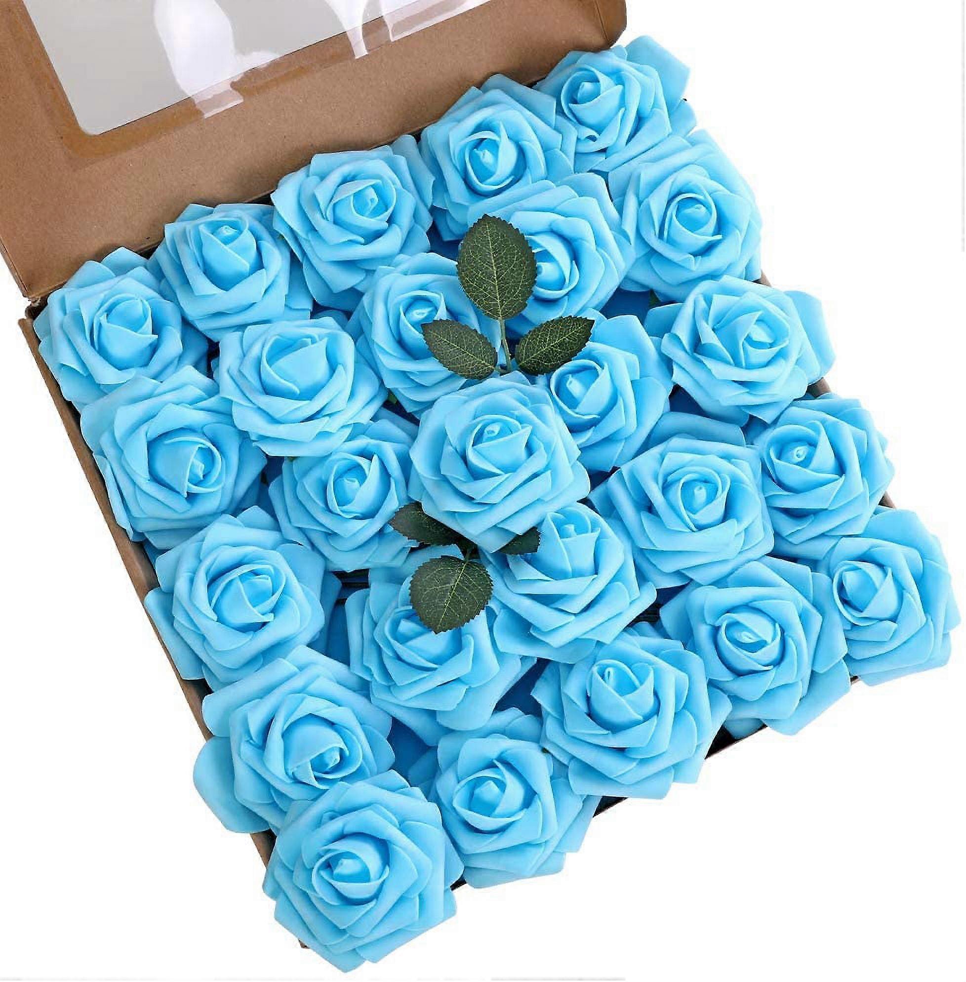 Artificial Roses Flowers 25pcs Red Real Looking Fake Roses w/Stem for DIY Wedding Bouquets Centerpieces Baby Shower Party Home Decor