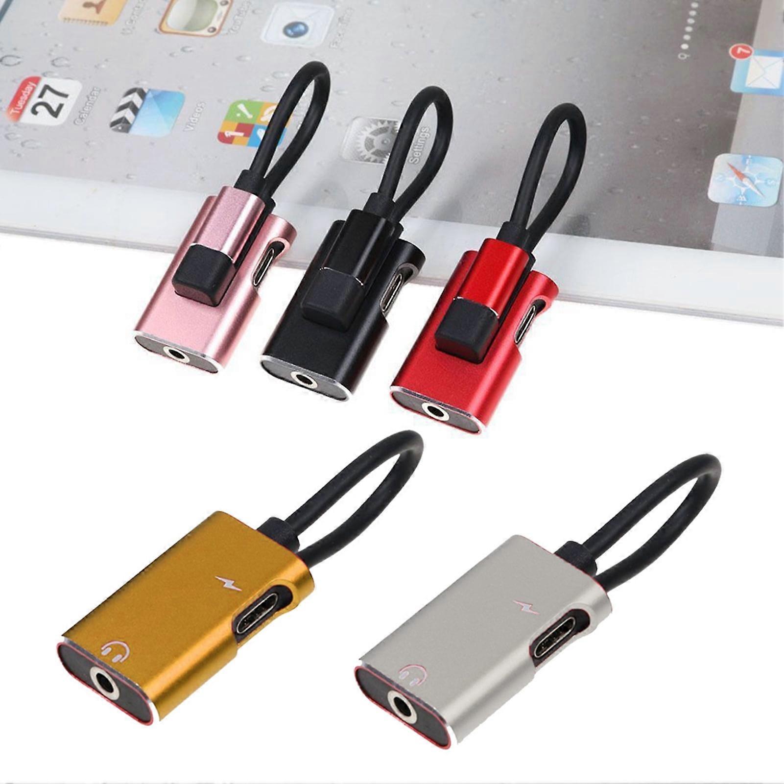 SUSUchens Headphone Adapter Jack 2-in-1 Type-C 3.5mm Charging-Support Aux Audio Cable Converter Adapter Jack for Smartphones Red