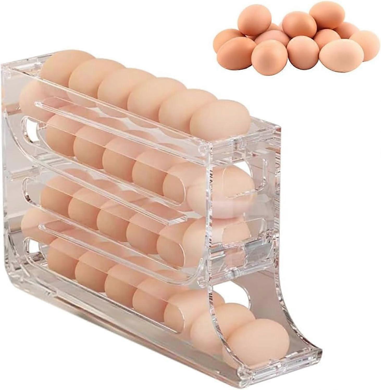 4-Tier Auto Rolling Egg Holder for Fridge, 30-Egg Capacity Dispenser Organizer, Compatible with Refrigerator & Kitchen Cabinet (Clear)