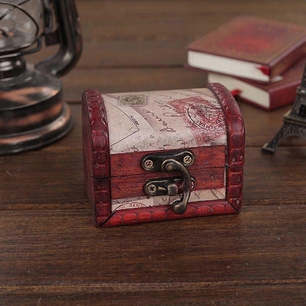Retro Stamp Style Metal Lock Wooden Jewelry Storage Box Treasure Necklace Case