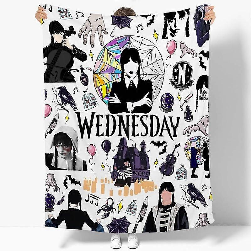 Wednesday Blanket - Horror Throw Compatible with Fan Art - Soft Flannel for Couch, Bed, Birthday, Halloween - 40"x50" Kid Size