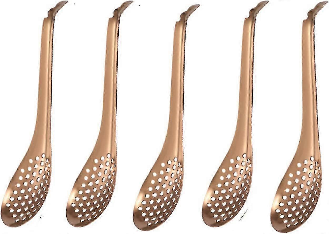 2025 VEIREN 5 Pieces Spherification Spoons Stainless Steel Cuisine Caviar Spoon Molecular Slotted with 50 Small Holes for Soup Cereals Dip Curry Sauce