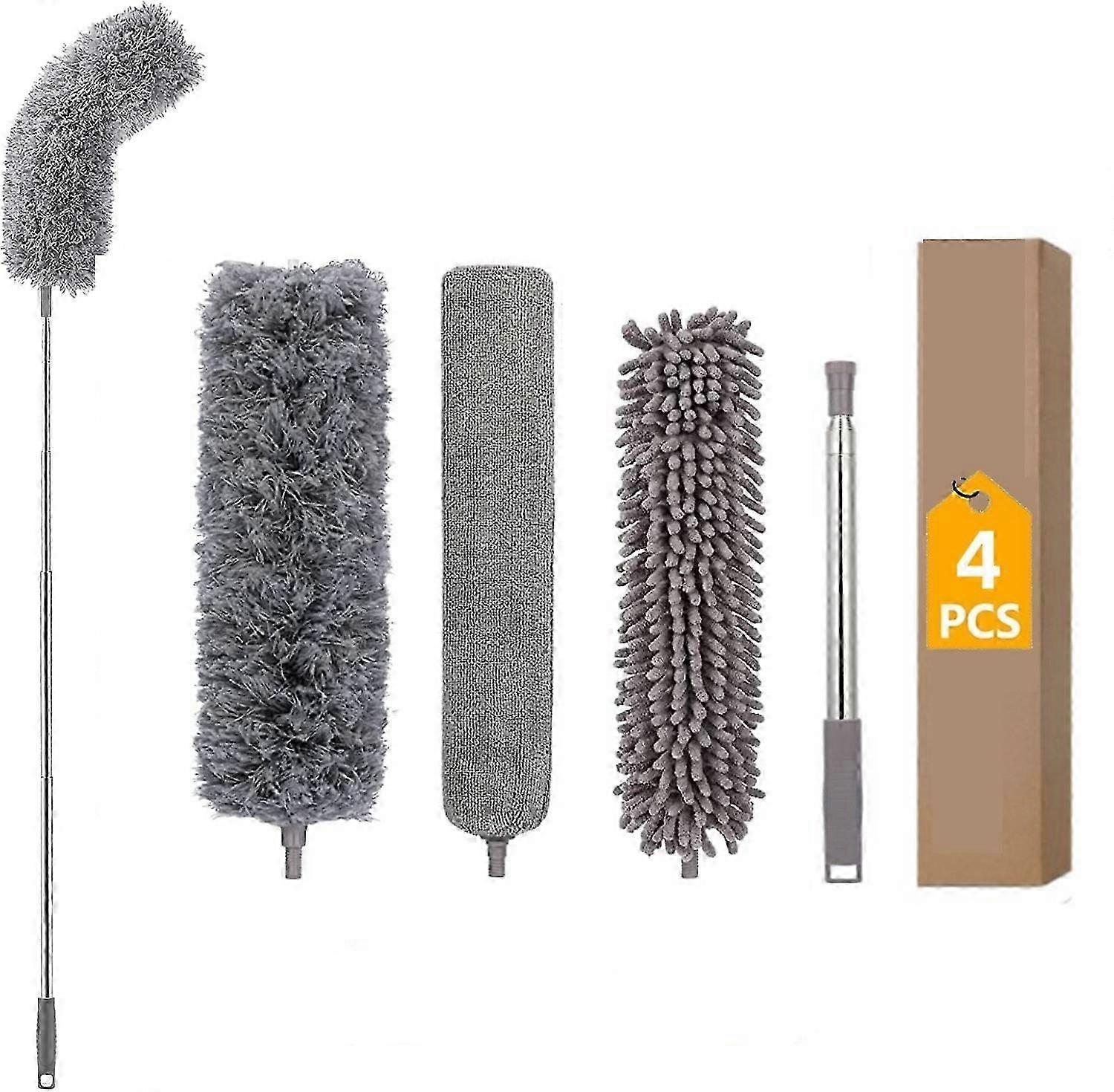 2025 Microfiber Duster Set For Efficient Home Cleaning, Flexible And Bendable Telescoping Extension Pole With Replaceable Microfiber Head, Washable An