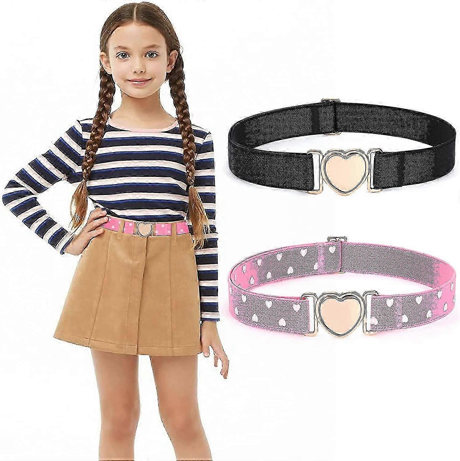 2025 2 Pack Girls Elastic Belts Kids Stretch Belts Fashion Cute Adjustable Heart Belt