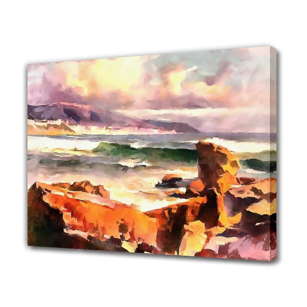 Coastal Scenery Canvas Poster Bedroom Decor Sports Landscape Office Room Decor Gift,Frame-style,08x12inch(20x30cm)