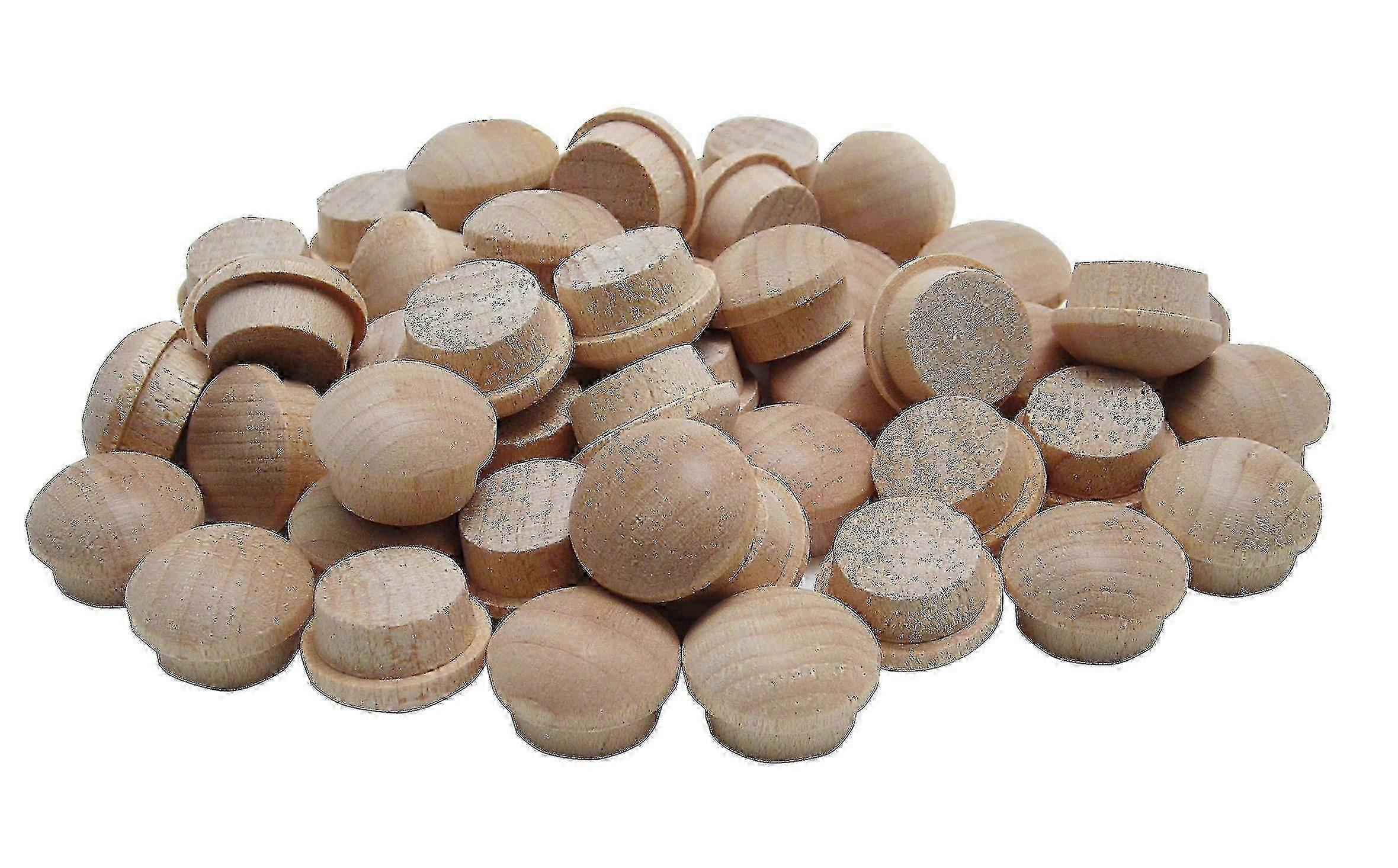 Ideal for filling in those unsightly screw holes can be installed easily with wood glue.Can be used for a variety of craft, woodworking and furniture projects.When fully seated, the domed, button head protrudes above the wood surface and over the screw hole edge adding a more decorative look.Slightly tapered plug body ensures a tight secure fit.Wood grain runs in the direction of the plug width for best match paint or stain for a perfect wood-color match or for accentuated contrast.
