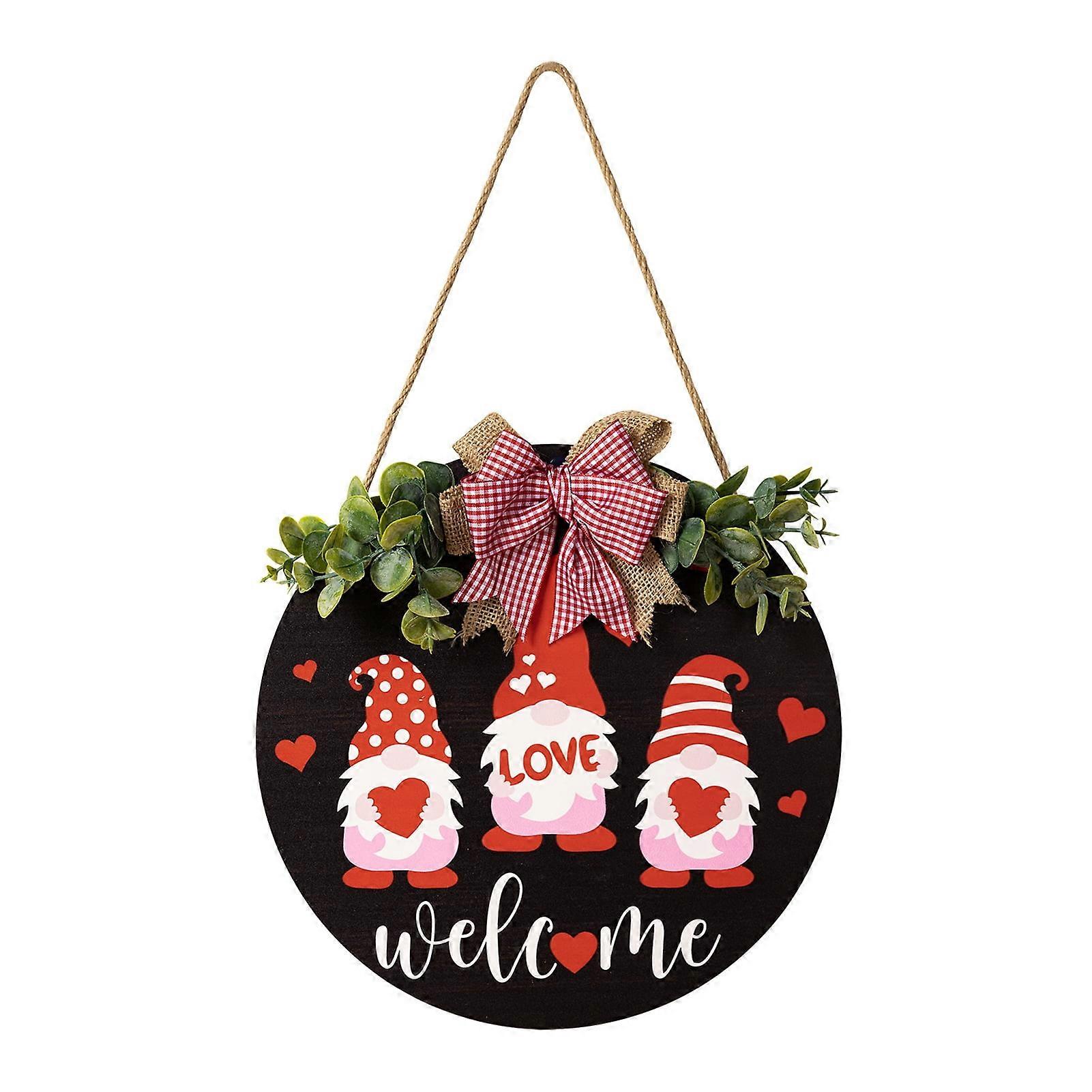 SUSUchens Rustic Wooden Round Hanging Sign Plaid Bowknot Decor Gnome Print Door Plate with Lanyard Hanging Ornament Home Decor Black and Red