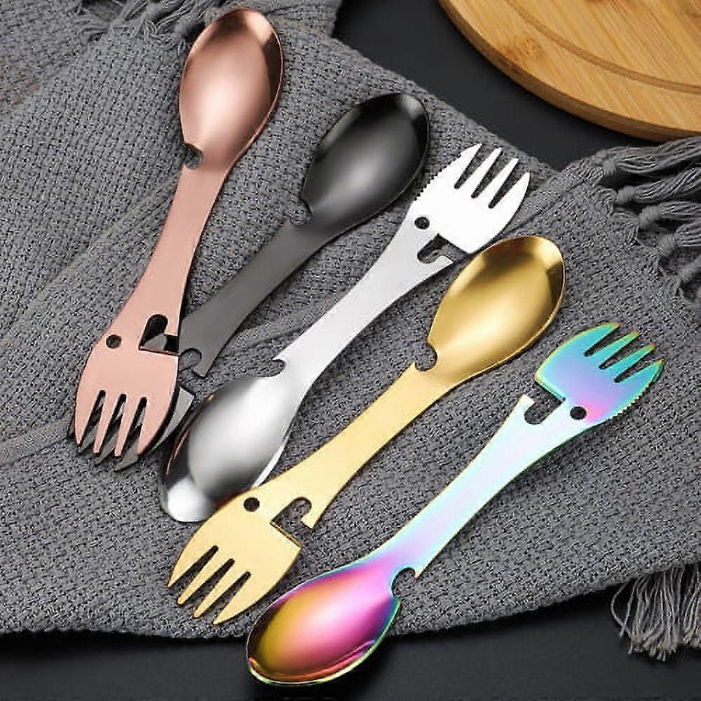 Vnanda 3Packs 5-in-1 Metal Sporks, Camping Spoon, Fork, Cutter, Bottle, and Can Opener, Stainless Steel Sporks