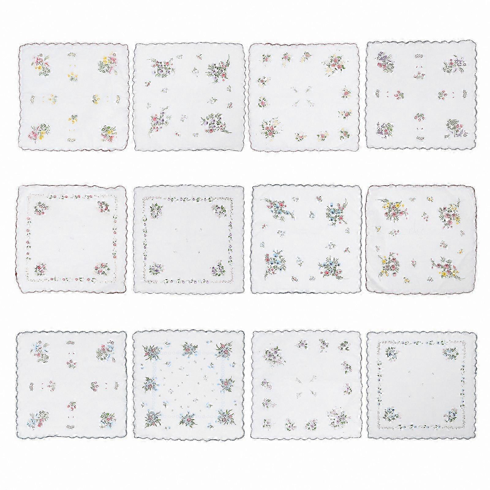 Floral Print Cotton Handkerchiefs for Women - 12 Pack