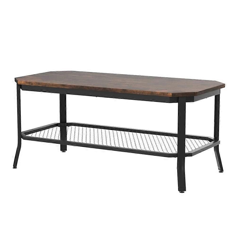 2-Tier Cocktail Tea Table, Industrial Coffee Table with Open Mesh Shelf, Wooden Top & Metal Frame, Rustic Brown, Compatible with Home, Dorm,