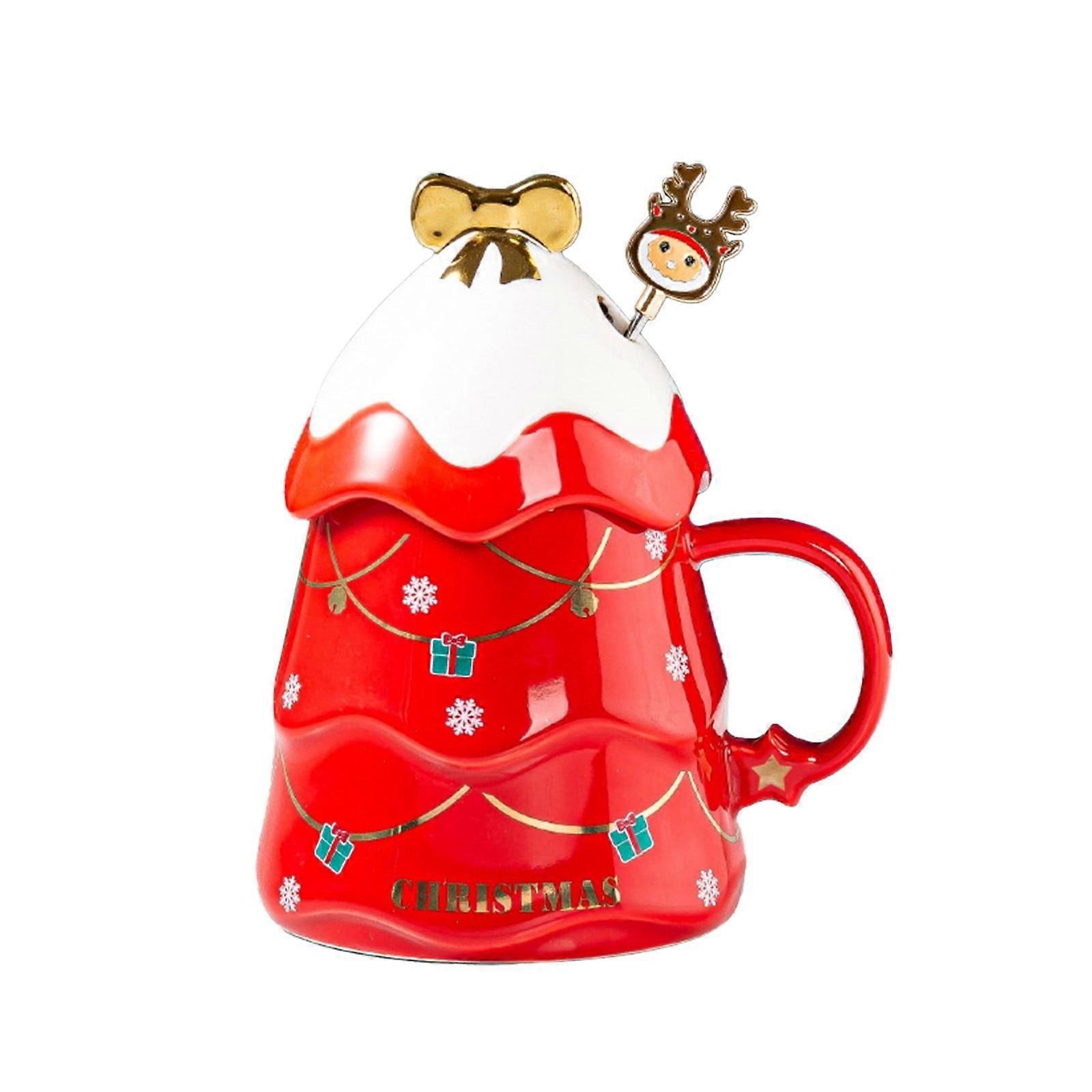 XIUH Glass&Bottle 17 Oz Christmas Tree Coffee Cup, Ceramic Kawaii Cup with Lid & Spoon, Compatible with Holiday Tea & Milk
