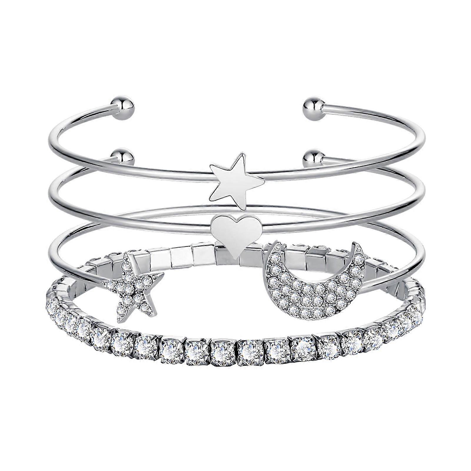 HALJEN Hand Chain Gold Plated a Set Fashion Diamond Star Moon Open Bracelet Jewelry Set Charm Bracelet Birthday Surprise Gift for Woman Girls