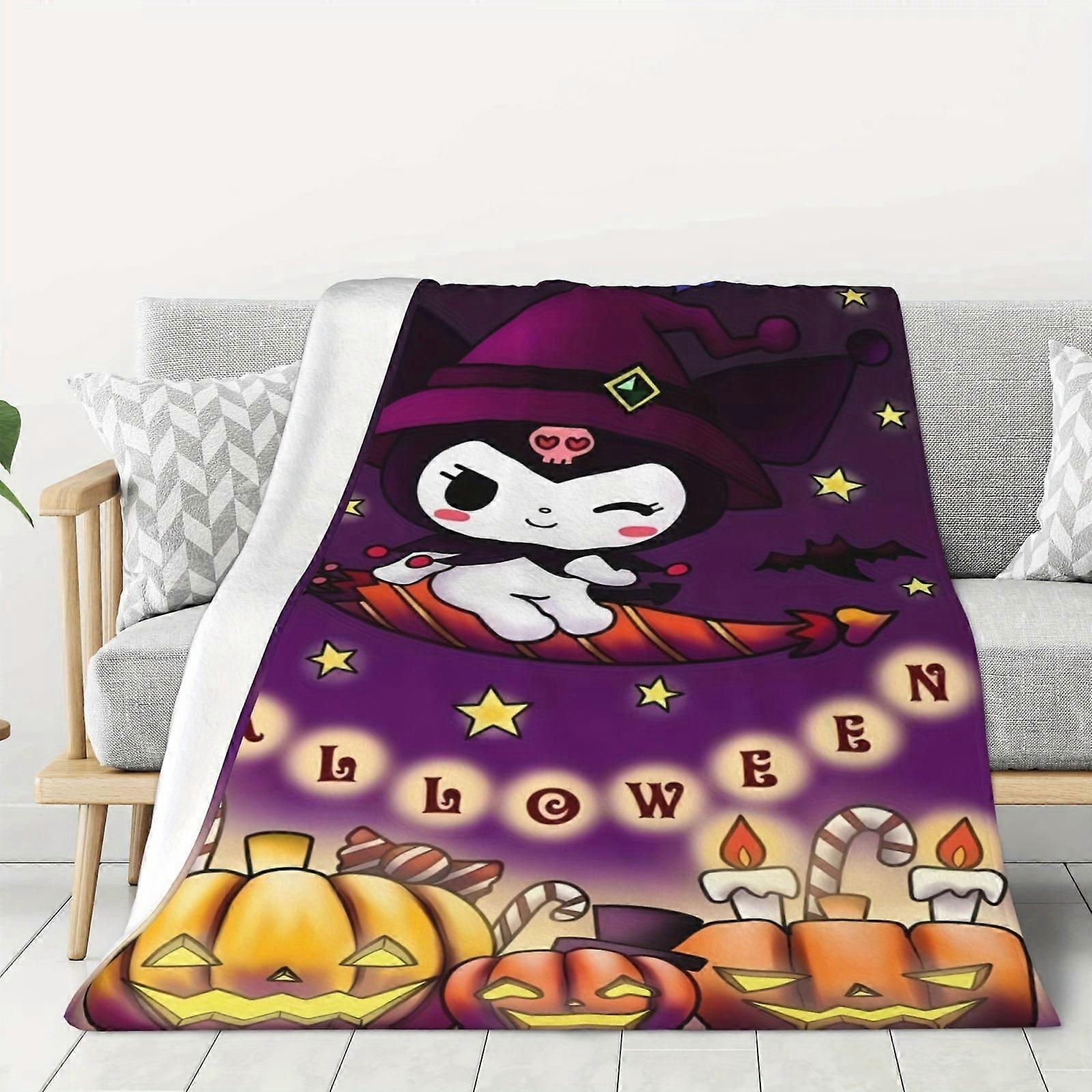 Halloween Hello Kitty Throw Blanket Cute Cartoon Kuromi Soft Flannel Fleece Warm Blanket for Couch Sofa Bed Living Room 60*80 H-4