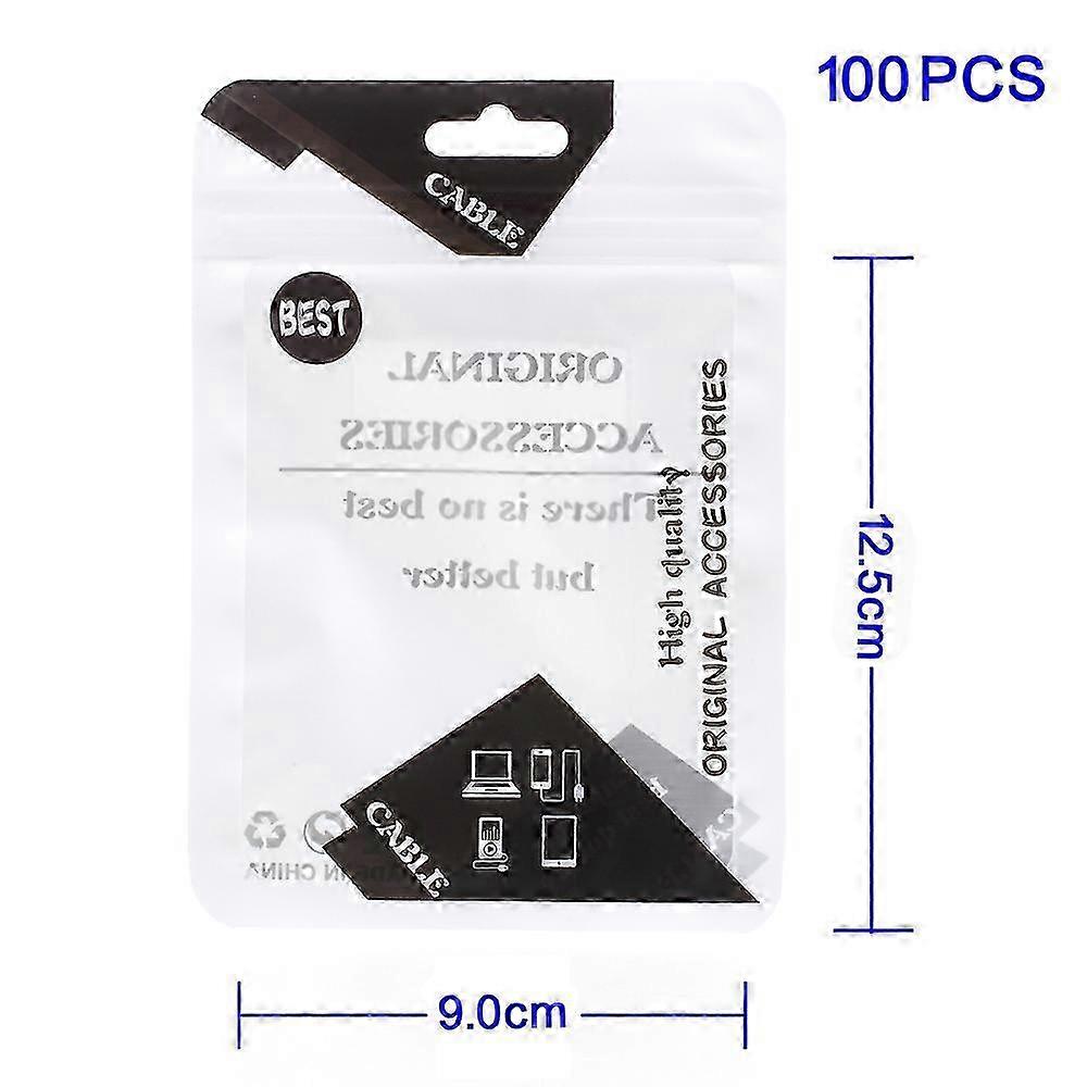 100-Piece Zipper Retail Packaging Bags for USB Data Cable - E8Q Black Bags, Size 12.5 x 9cm