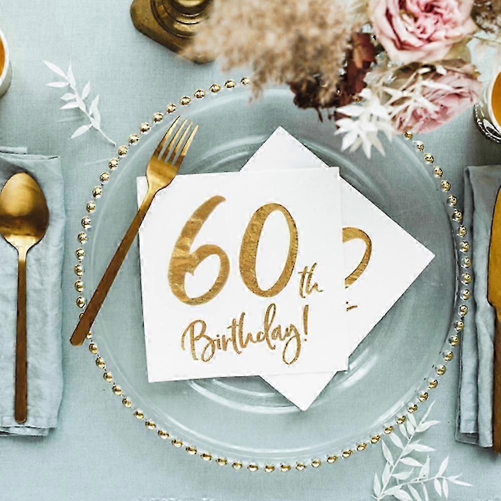 60th Birthday Party Paper Napkins, White, Pack of 20