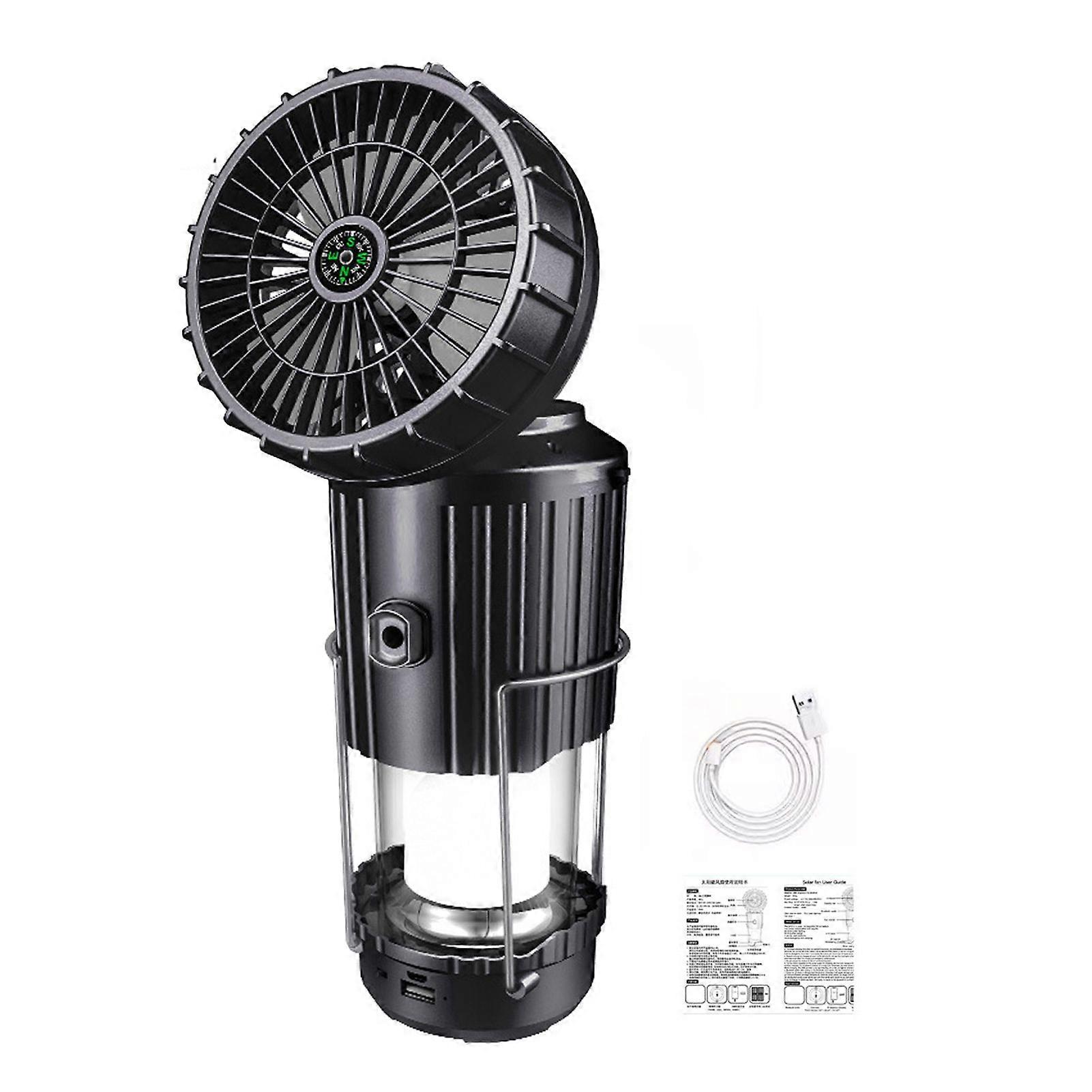 5-in-1 Portable LED Camping Lantern with Fan Bluetooth-compatible Speaker Solar Powered USB Rechargeable Emergency Hanging Light