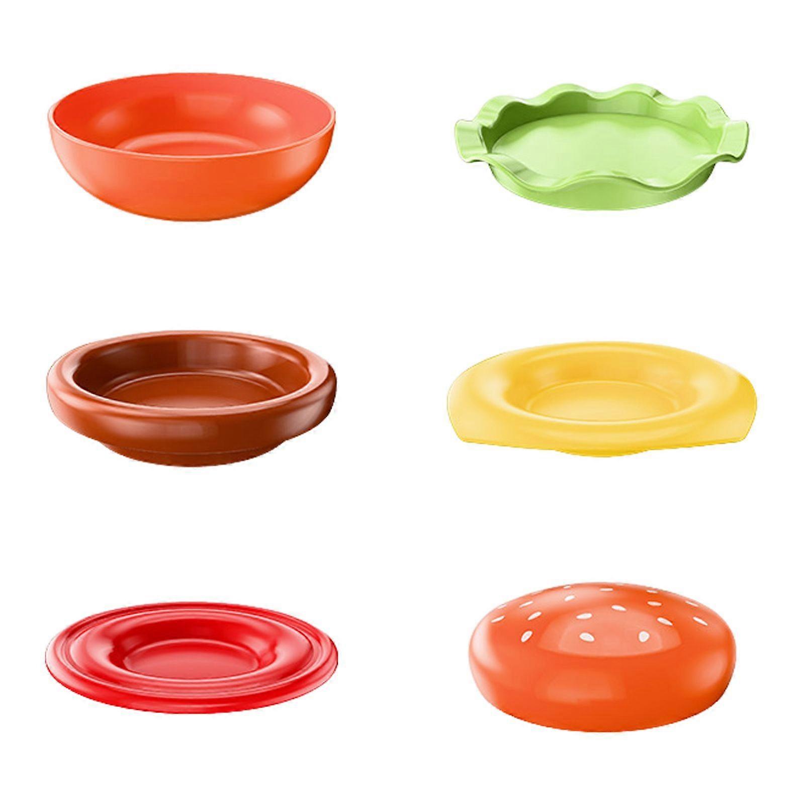 Hamburger Appetizer Plates Set 6-Layer Mini Plate Sets for Dessert Sauces Dip Stackable Serving Dishes for Snacks Sushi Parties