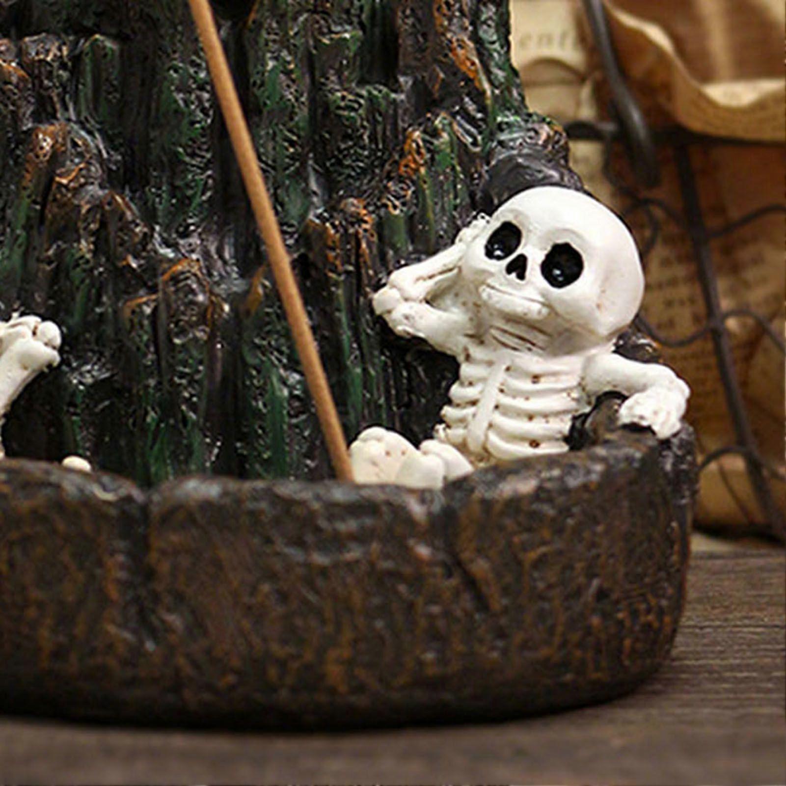 Halloween Skull Mountain Backflow Incense Burner Waterfall Incense Holder with 12 Incense Cones And Stick Resin Aromatherapy Holder for Gothic Home De