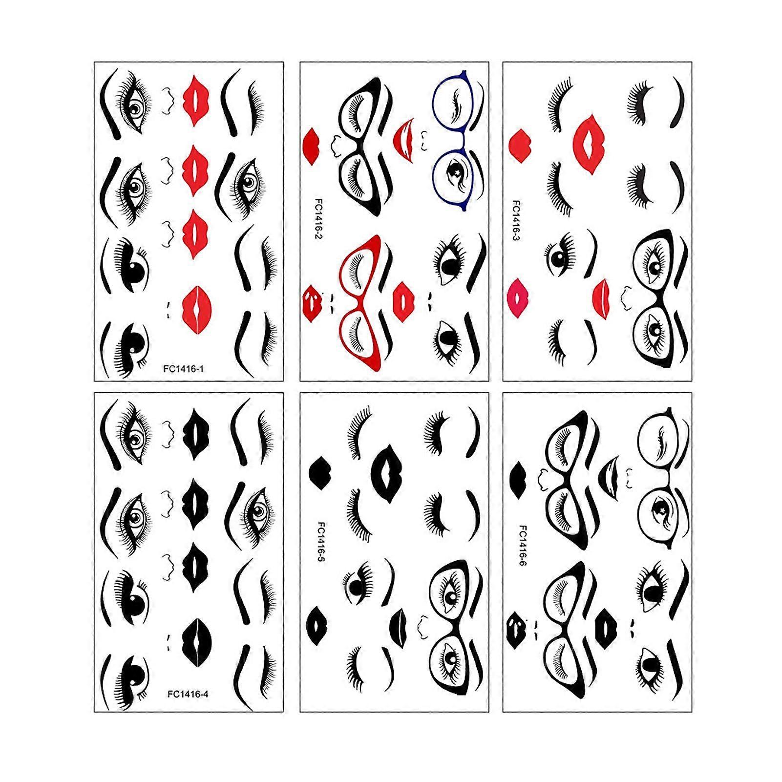 6 Sheets Face Stickers Lips Eyes Eyebrows Nose Decals Self Adhesive Woman Face Decals for DIY Crafts Flower Pots Holiday Party Decoration