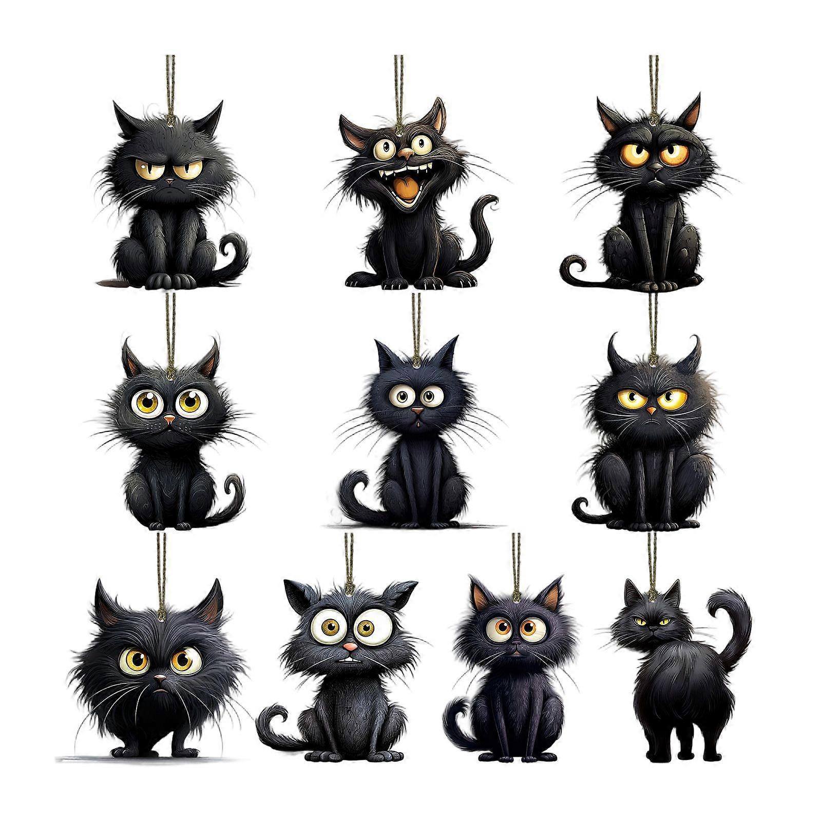10/20Pcs Halloween Black Cat Hanging Decoration Indoor Outdoor Car Rearview Mirror 2D Flat Acrylic Kitten Hanging Ornament Pendant