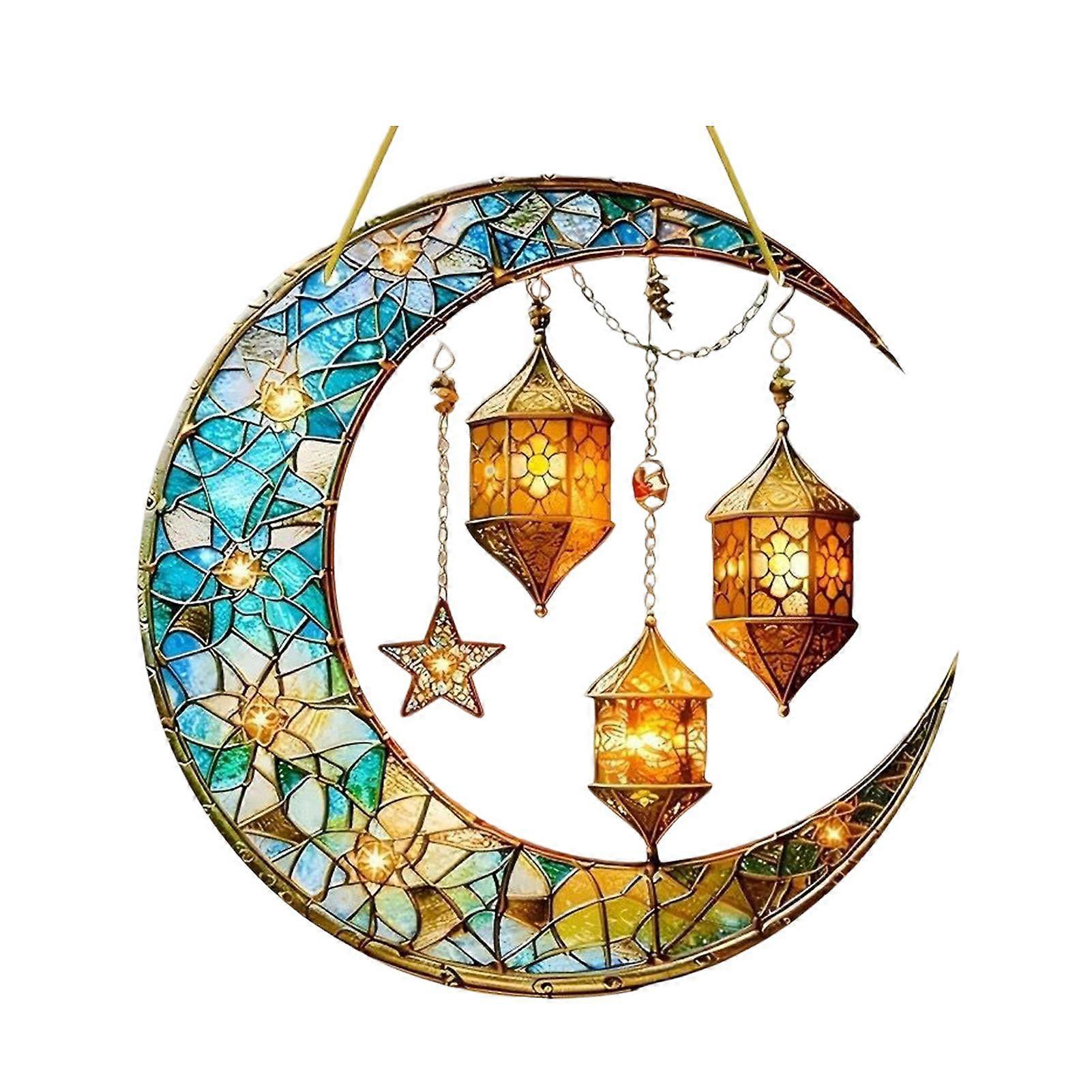 Moon Suncatcher Hanging Decoration Moon Star Lantern Stained Glass 2D Flat Acrylic Indoor Outdoor Wall Window Hanging Sign Ornament