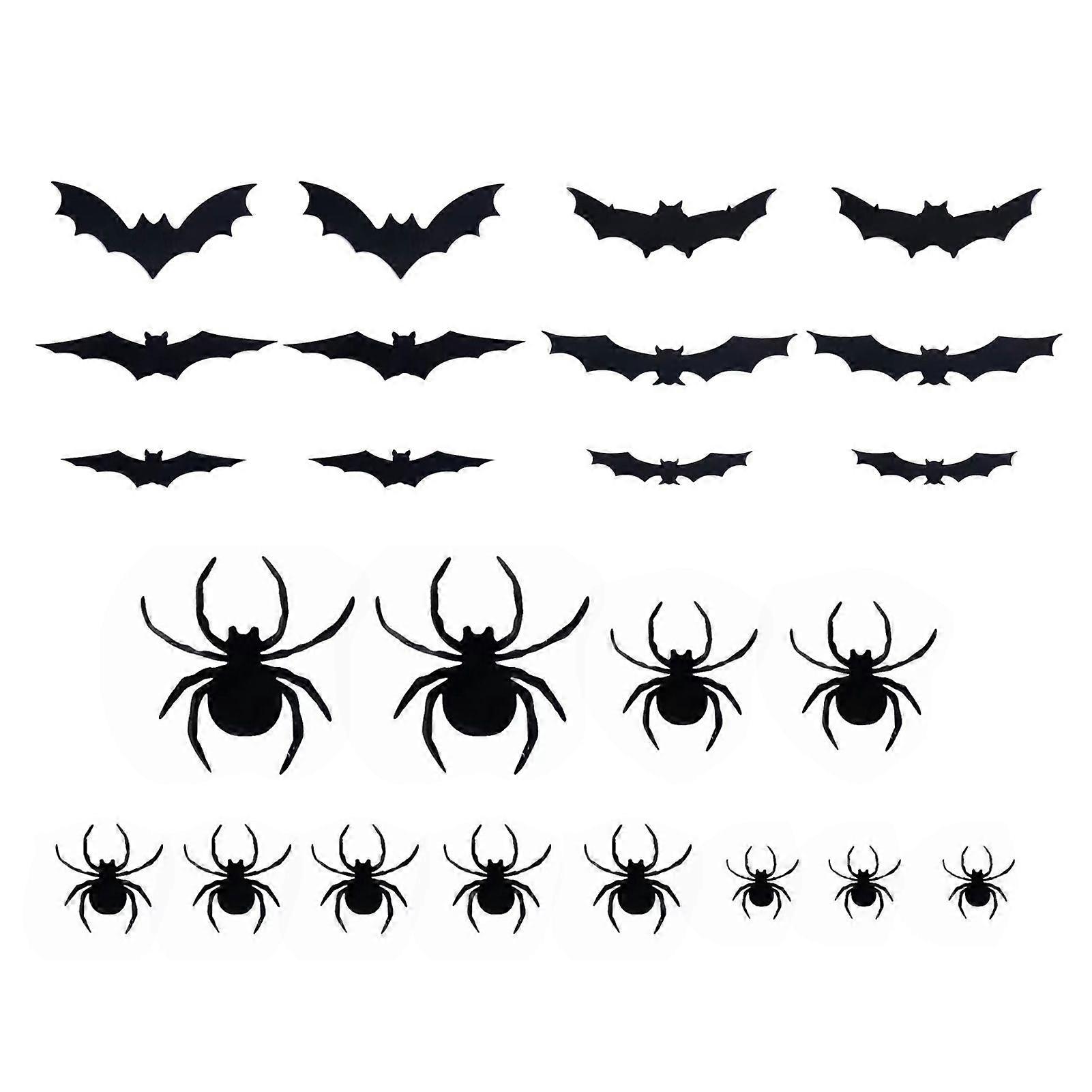 24 Pcs Halloween 3D Bat And Spider Stickers Spooky Black Spider Bat Wall Decals Removable PVC Cings for Home Office Wall Window Decor