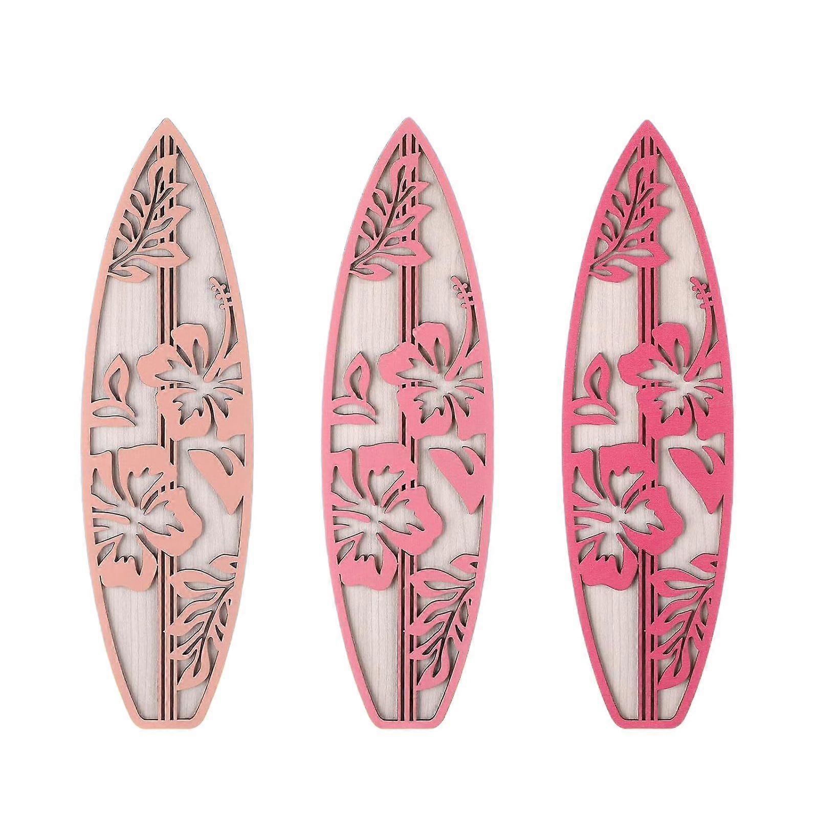 3Pcs/Set Wooden Hibiscus Surfboard Wall Decoration Farmhouse Rustic Surfboard Wall Art Home Bedroom Living Room Bathroom Wall Decorative Sign