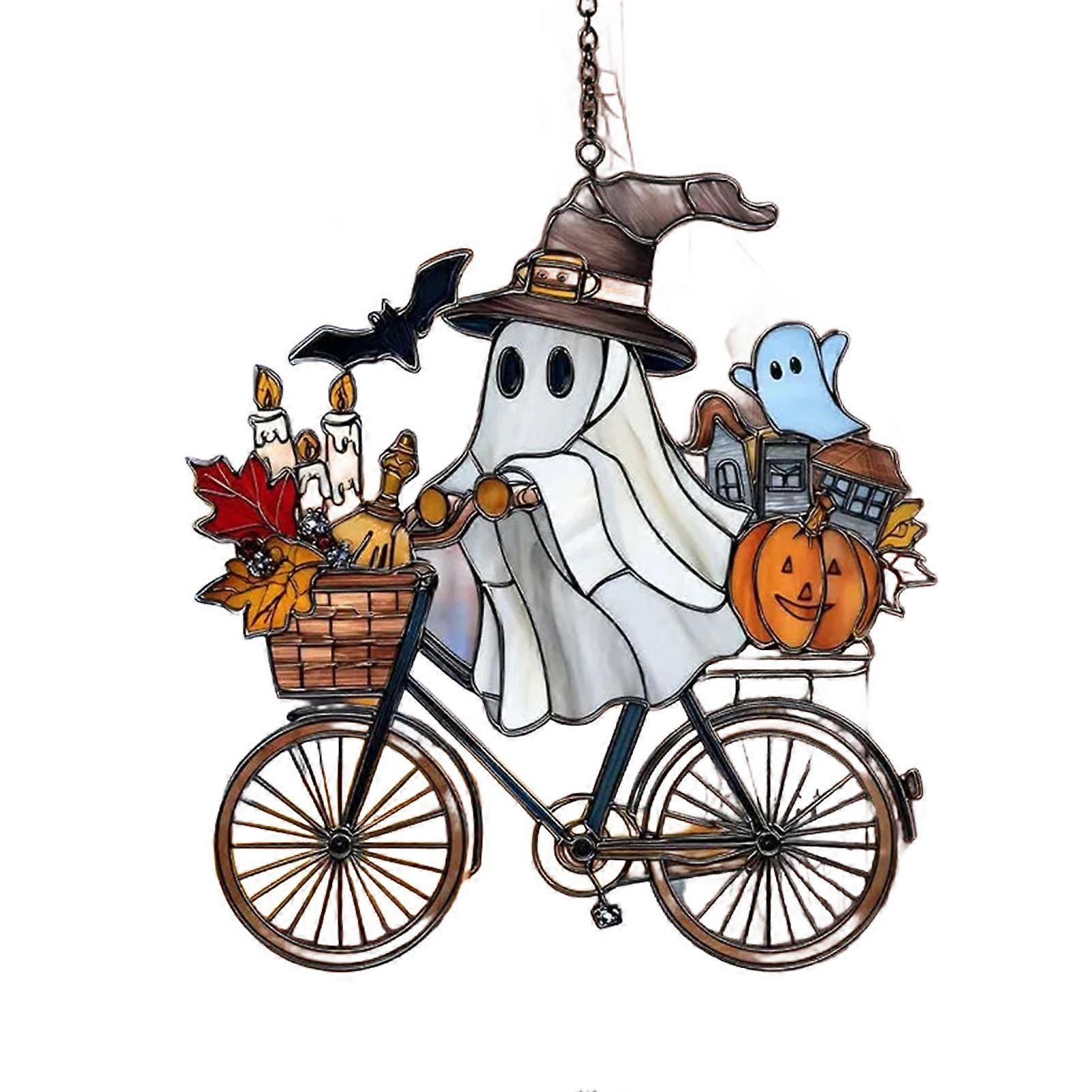 Halloween Pendant Witch Ghost Ride Shape Pendant Image Stained Glass Window Hanging Ornament Festivals Halloween Decoration