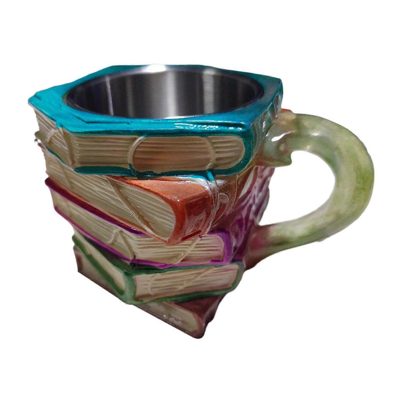 Painted Book Cup 3D Stacked Book Coffee Mug 300ml Unique Reading Atmosphere Mug Literary Collection Gifts for Book Lovers