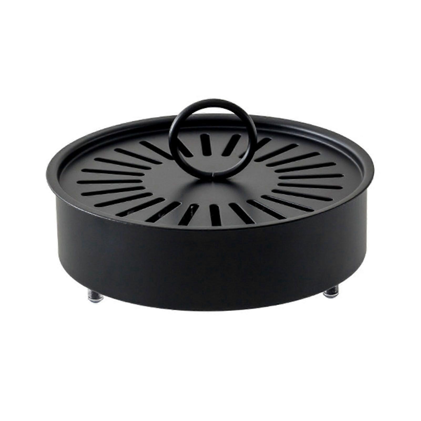 Incense Coil Holder with Handle Cover Portable Indoor Outdoor Camping Fireproof Round Metal Repellent Spiral Incense Burner Ash Catcher Tray
