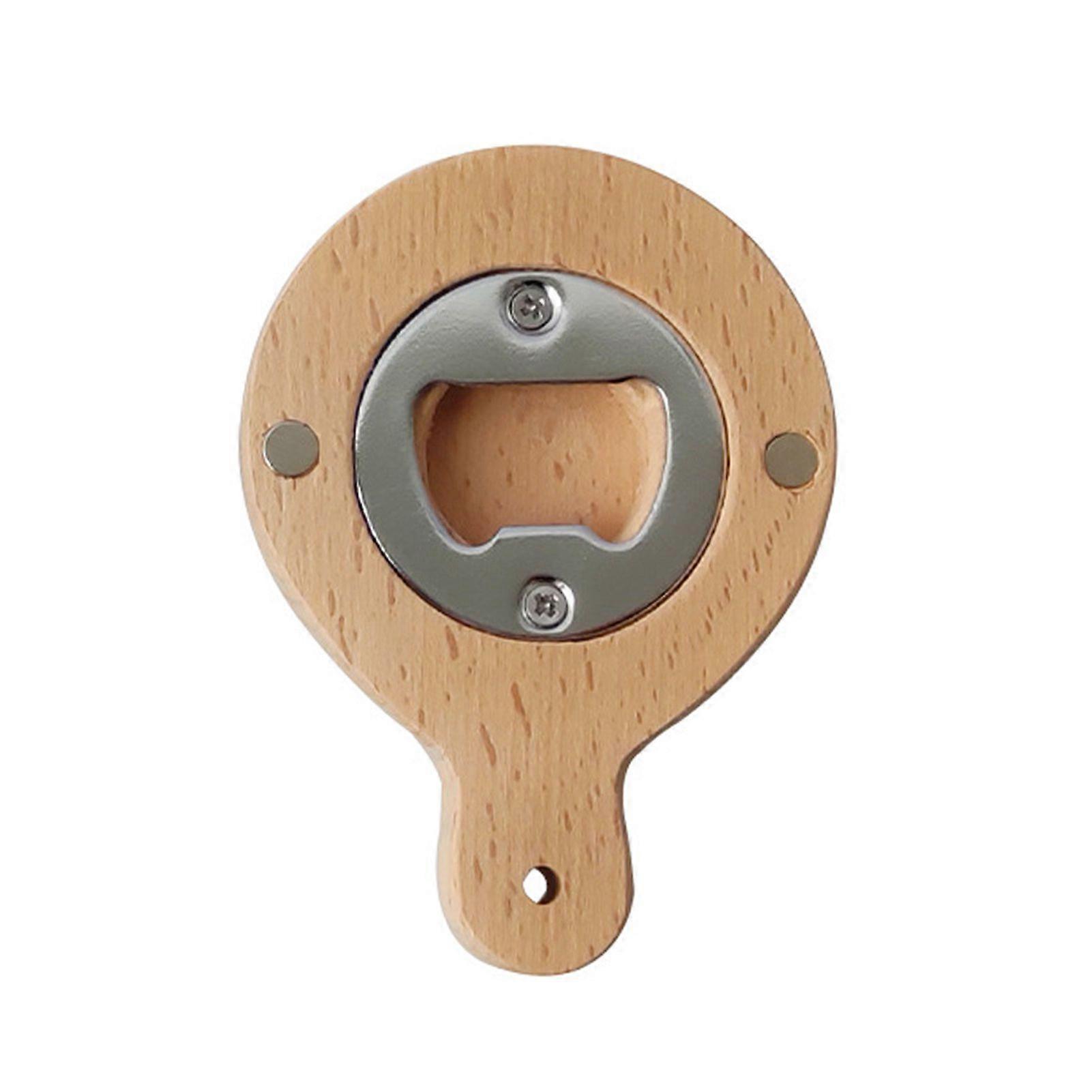 Solid Wood Bottle Opener with Handle Round Refrigerator Magnets Ergonomic Grip Beer Opener for Home Commercial Use