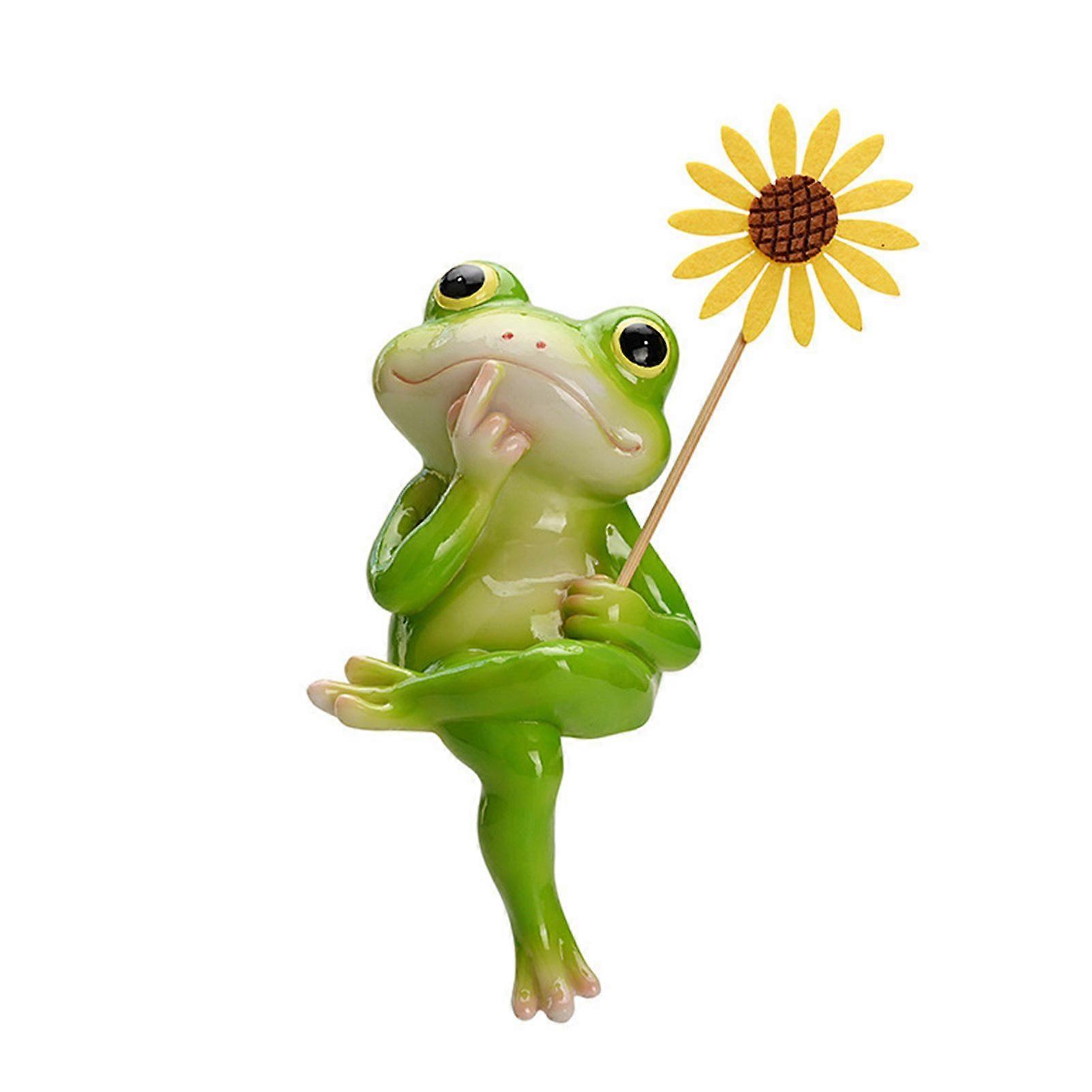 Garden Ornament Thinking Frog Holding Flower Shape Resin Statue Realistic Design Garden Pond Fountain Aquarium Figure