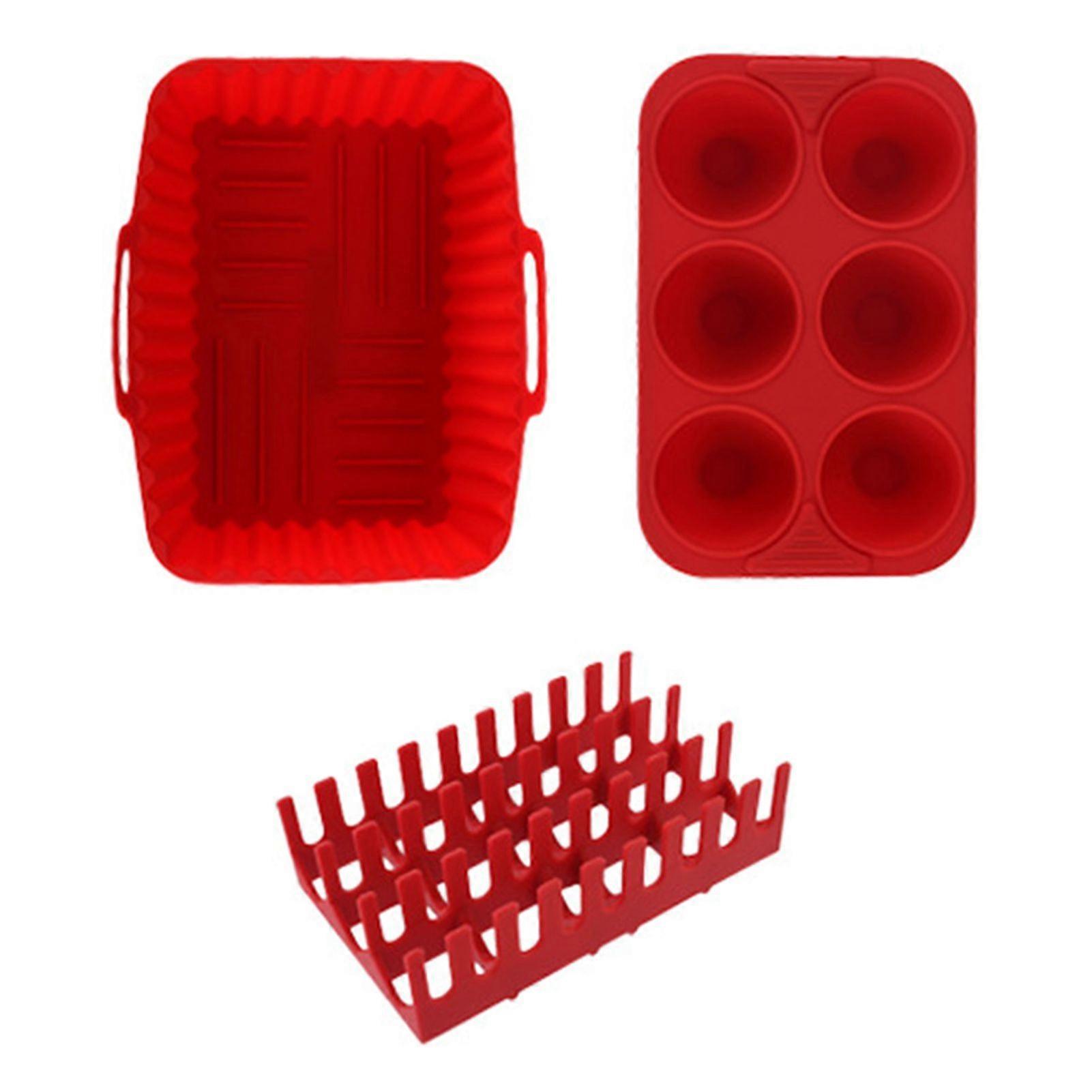 Silicone Air Fryer Liners Set Non-stick Baking Tray Hot Dog Bacon Rack Reusable Baking Pans Air Fryer Cooking Utensils